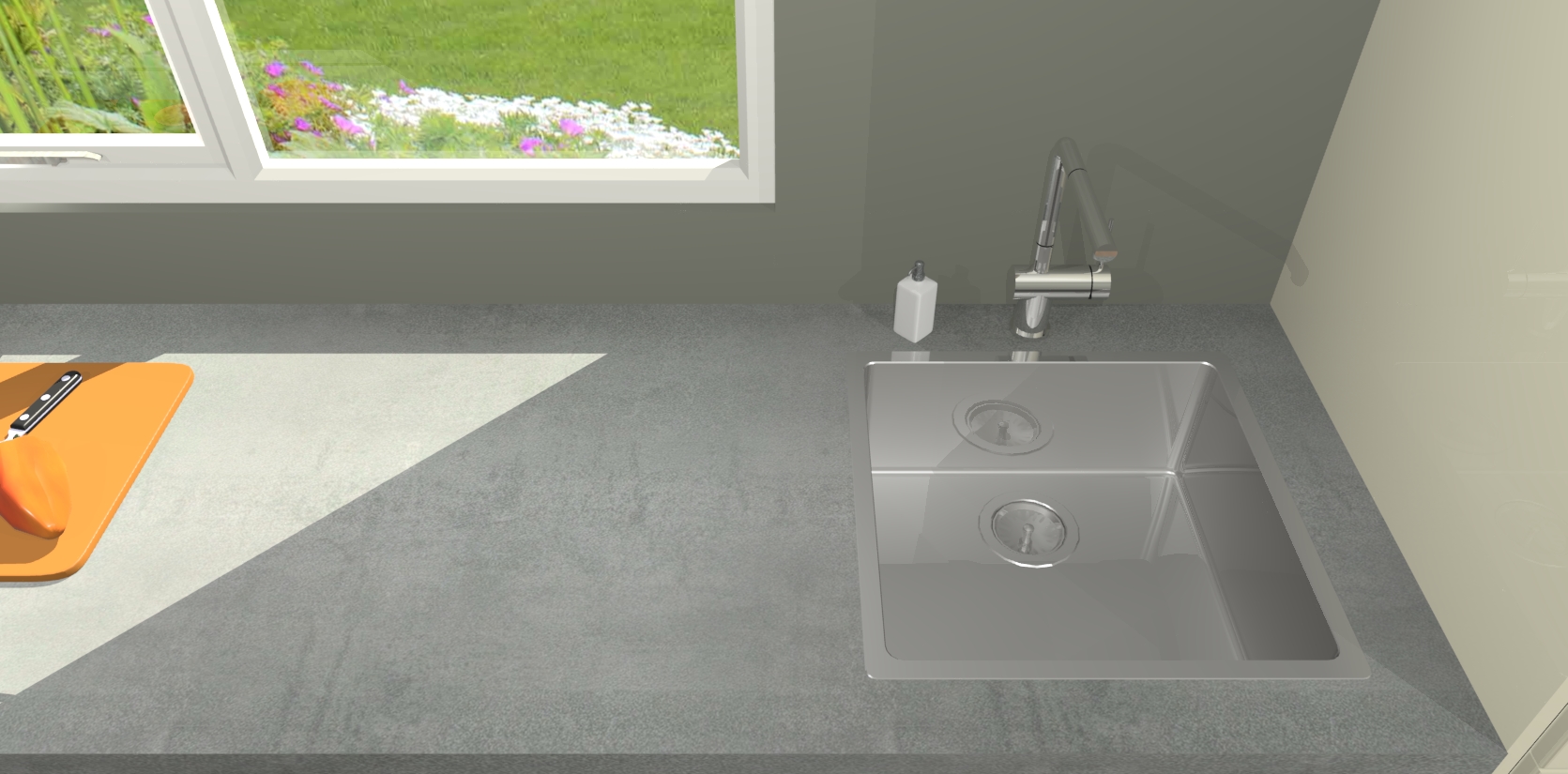- De spoelbak is nog niet in gevreesd. Dit dient tijdens het werk gedaan te worden