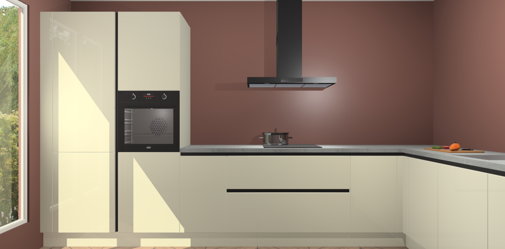 Met een modern, tijdloos design en ruime opslagruimte, zult u zich in no-time thuis voelen in uw nieuwe keuken. Uw leven wordt eenvoudiger met de soft-close deuren die voor het ultieme stille comfort zorgen - geen geluid dat u stoort terwijl u kookt. Ook is de keuken voorzien van 5 ingebouwde apparaten: een oven, inductie kookplaat, afzuigkap, vaatwasser en koelkast. Deze kunnen gemakkelijk na bestelling worden bijgewerkt naar AEG - waardoor uw luxe ervaring compleet is.