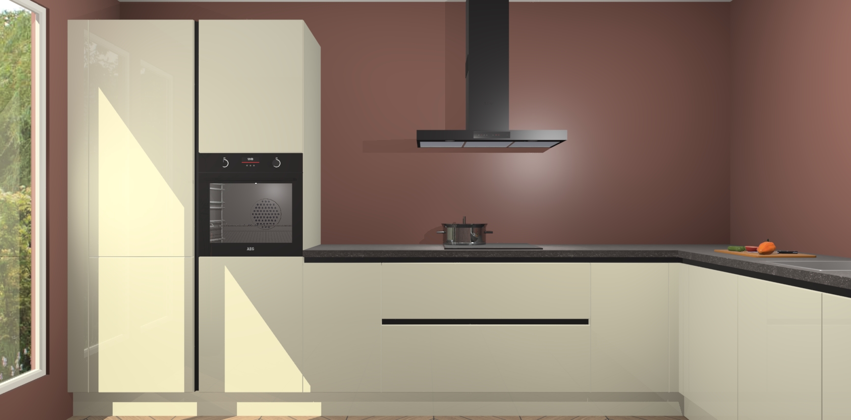 Met een modern, tijdloos design en ruime opslagruimte, zult u zich in no-time thuis voelen in uw nieuwe keuken. Uw leven wordt eenvoudiger met de soft-close deuren die voor het ultieme stille comfort zorgen - geen geluid dat u stoort terwijl u kookt. Ook is de keuken voorzien van 5 ingebouwde apparaten: een oven, inductie kookplaat, afzuigkap, vaatwasser en koelkast. Deze kunnen gemakkelijk na bestelling worden bijgewerkt naar AEG - waardoor uw luxe ervaring compleet is.