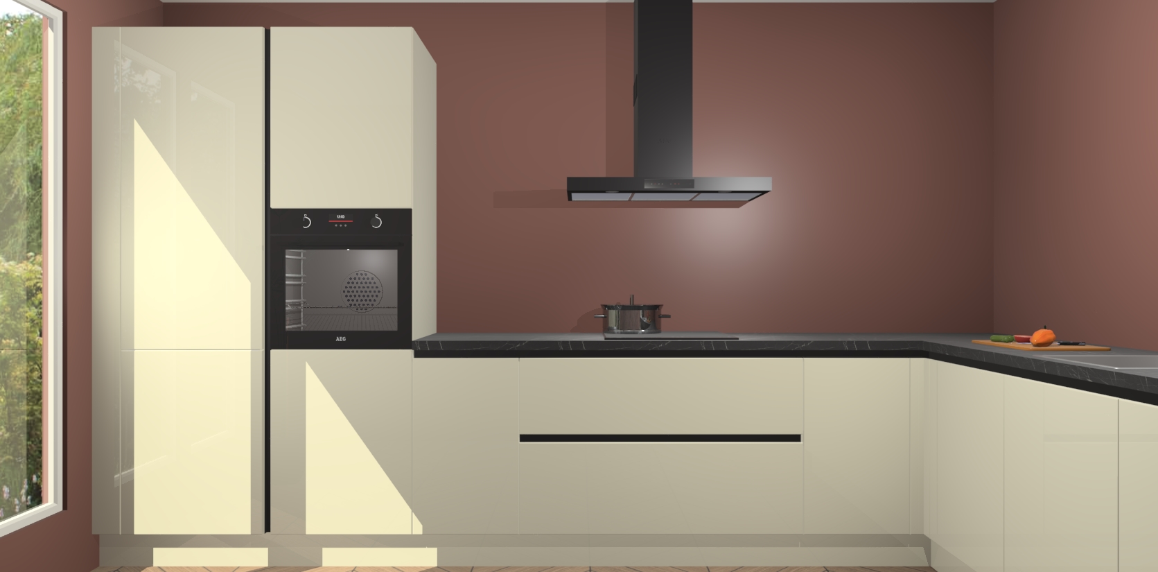 Met een modern, tijdloos design en ruime opslagruimte, zult u zich in no-time thuis voelen in uw nieuwe keuken. Uw leven wordt eenvoudiger met de soft-close deuren die voor het ultieme stille comfort zorgen - geen geluid dat u stoort terwijl u kookt. Ook is de keuken voorzien van 5 ingebouwde apparaten: een oven, inductie kookplaat, afzuigkap, vaatwasser en koelkast. Deze kunnen gemakkelijk na bestelling worden bijgewerkt naar AEG - waardoor uw luxe ervaring compleet is.