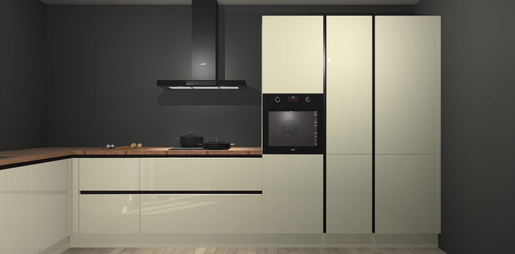 Welkom bij de magnolia hoogglans greeploze keuken Nuuk. Deze prachtige keuken zal de komende jaren het middelpunt van de belangstelling in uw huis zijn. Uitgerust met vijf inbouwapparaten komt u nooit kookgereedschap tekort.