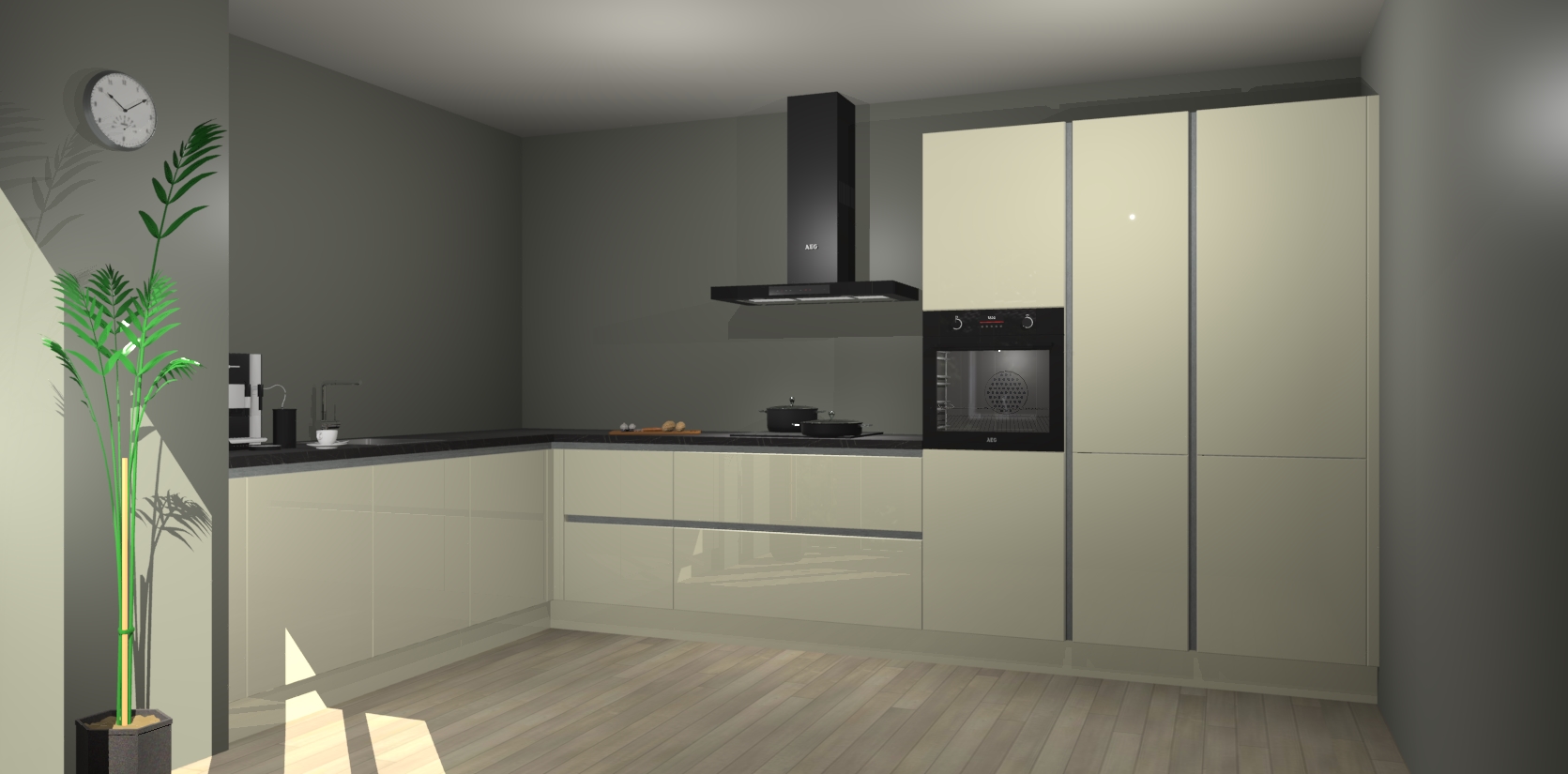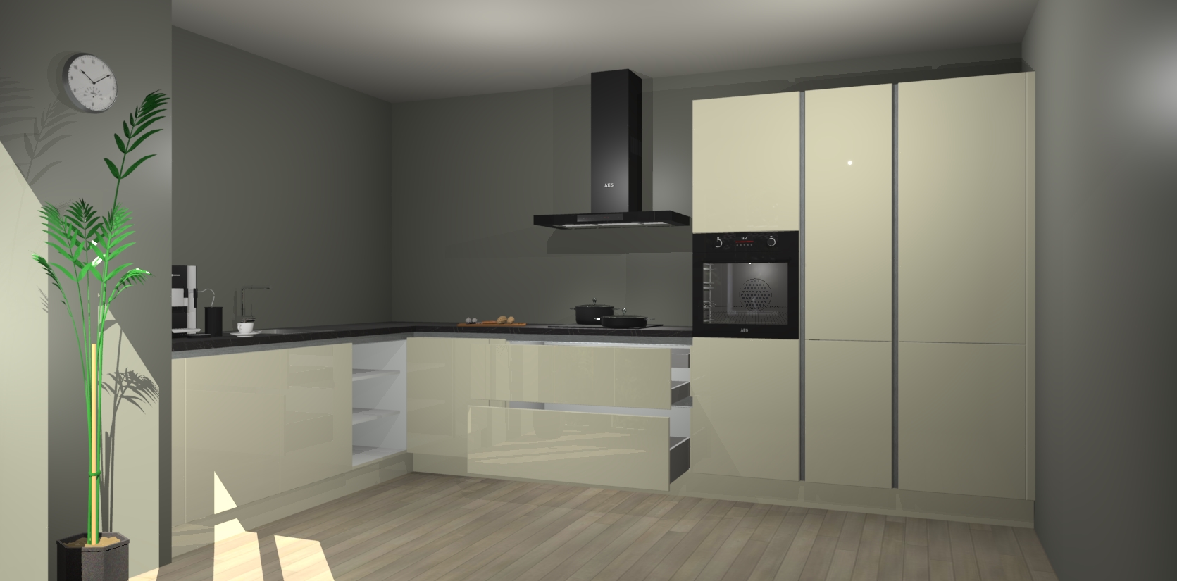 Welkom bij de magnolia hoogglans greeploze keuken Nuuk. Deze prachtige keuken zal de komende jaren het middelpunt van de belangstelling in uw huis zijn. Uitgerust met vijf inbouwapparaten komt u nooit kookgereedschap tekort.