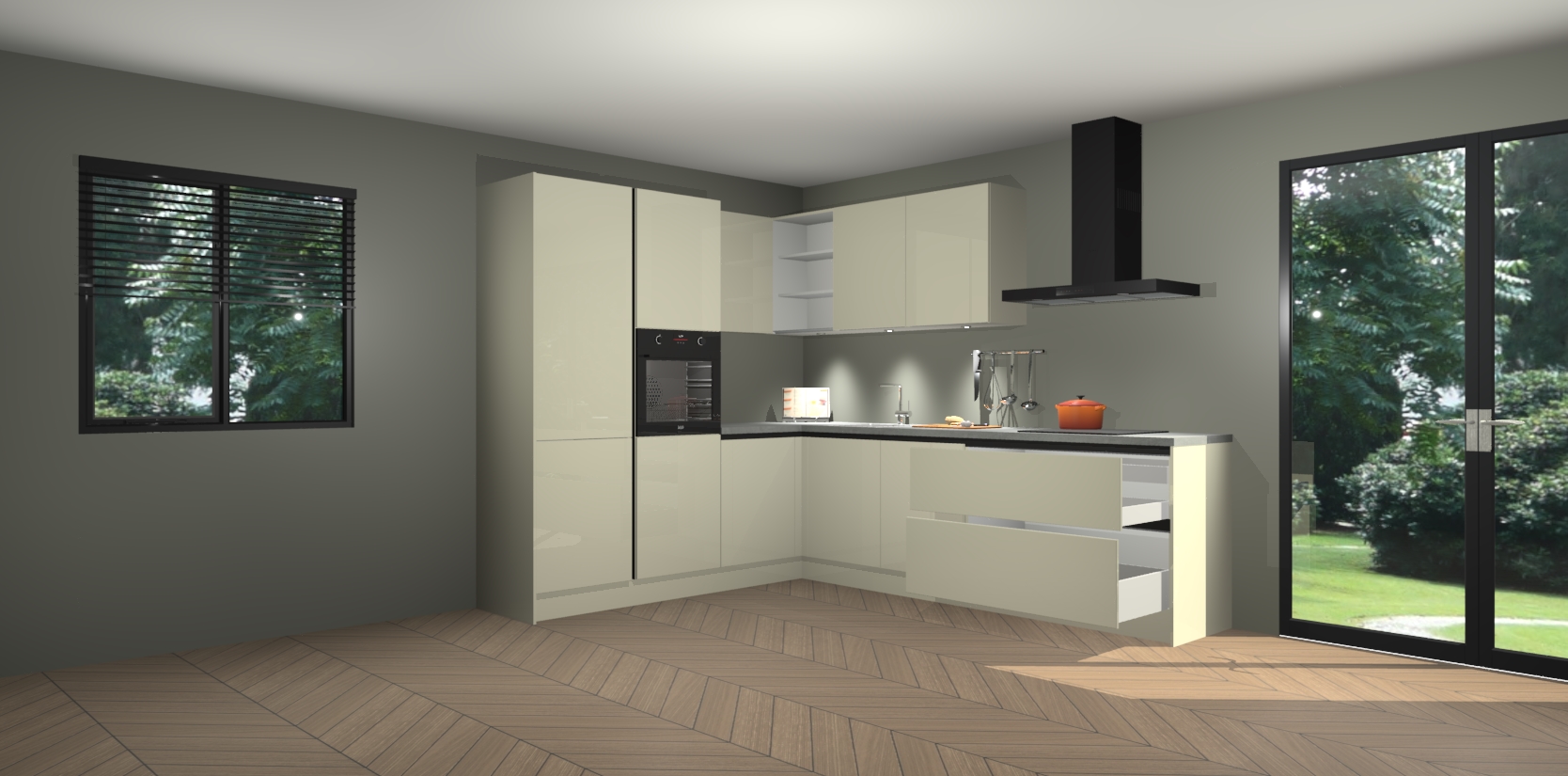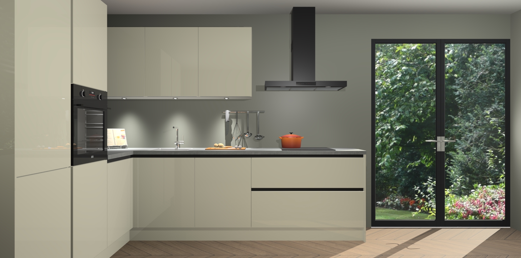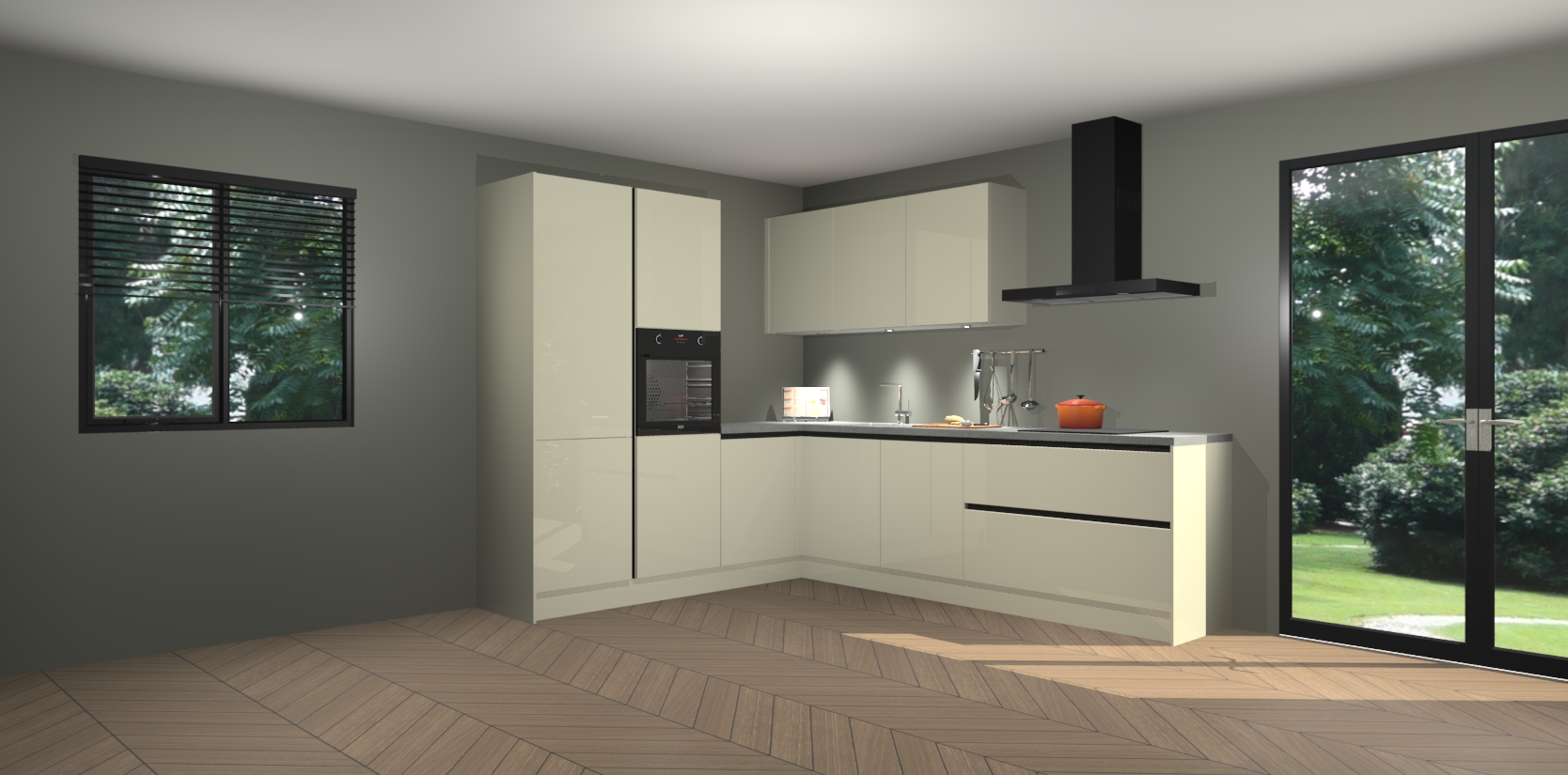 Met de magnolia hoogglans greeploze keuken Parla Maakt u van uw keuken het pronkstuk van uw huis. Stijlvol en toch praktisch, de nieuwste look voor wie meer waarde en charme aan zijn huis wil toevoegen. Met prachtige zwarte handgrepen die zich lenen voor een klassieke stijlbron, zal u niet teleurgesteld zijn in het resultaat. De soft-close deurscharnieren geven een gevoel van luxe omdat ze zachtjes bewegen zonder storende of krakende geluiden te veroorzaken.