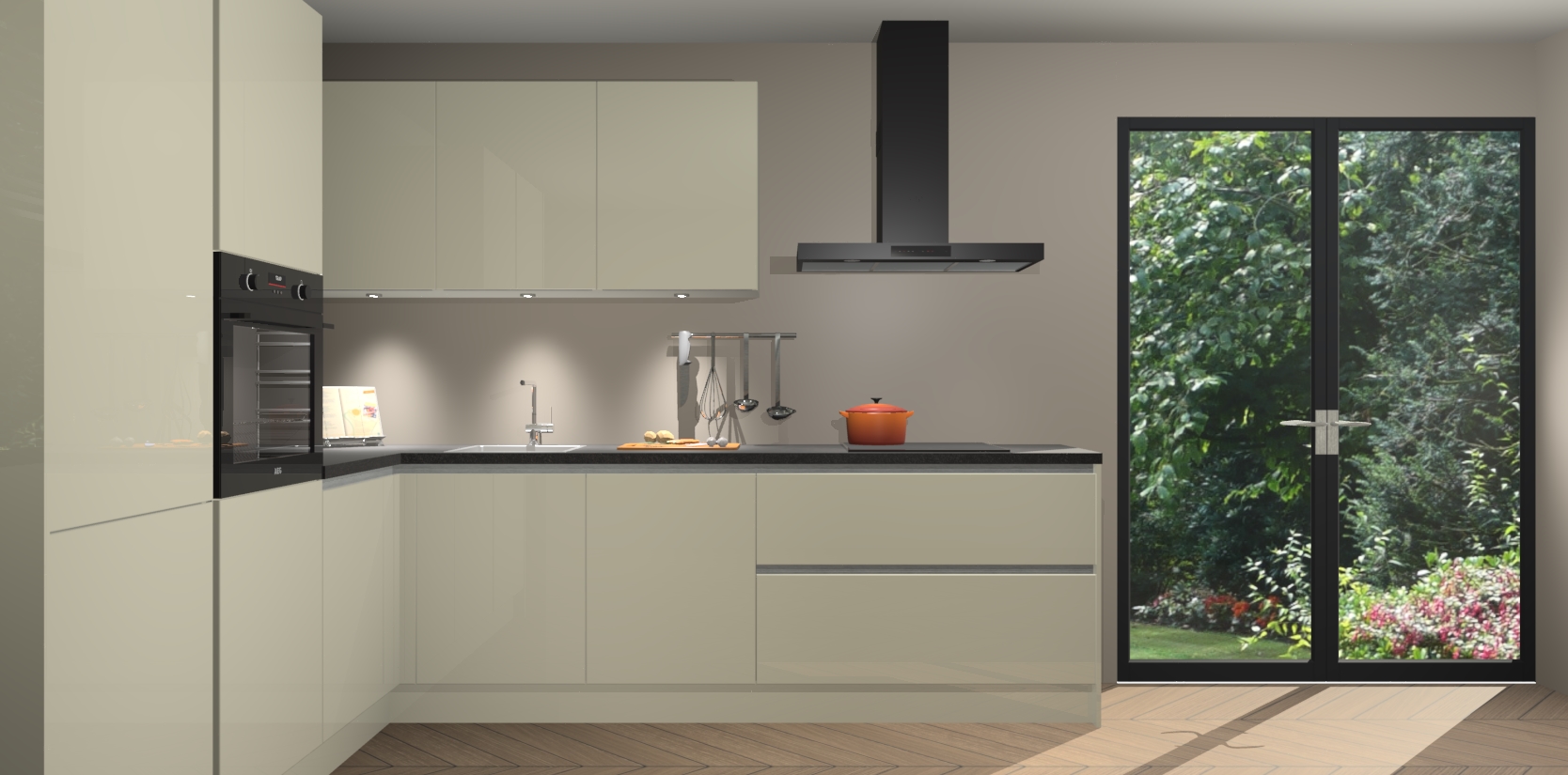 Met de magnolia hoogglans greeploze keuken Parla Maakt u van uw keuken het pronkstuk van uw huis. Stijlvol en toch praktisch, de nieuwste look voor wie meer waarde en charme aan zijn huis wil toevoegen. Met prachtige zwarte handgrepen die zich lenen voor een klassieke stijlbron, zal u niet teleurgesteld zijn in het resultaat. De soft-close deurscharnieren geven een gevoel van luxe omdat ze zachtjes bewegen zonder storende of krakende geluiden te veroorzaken.
