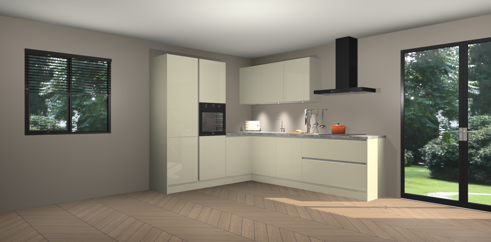 Met de magnolia hoogglans greeploze keuken Parla Maakt u van uw keuken het pronkstuk van uw huis. Stijlvol en toch praktisch, de nieuwste look voor wie meer waarde en charme aan zijn huis wil toevoegen. Met prachtige zwarte handgrepen die zich lenen voor een klassieke stijlbron, zal u niet teleurgesteld zijn in het resultaat. De soft-close deurscharnieren geven een gevoel van luxe omdat ze zachtjes bewegen zonder storende of krakende geluiden te veroorzaken.