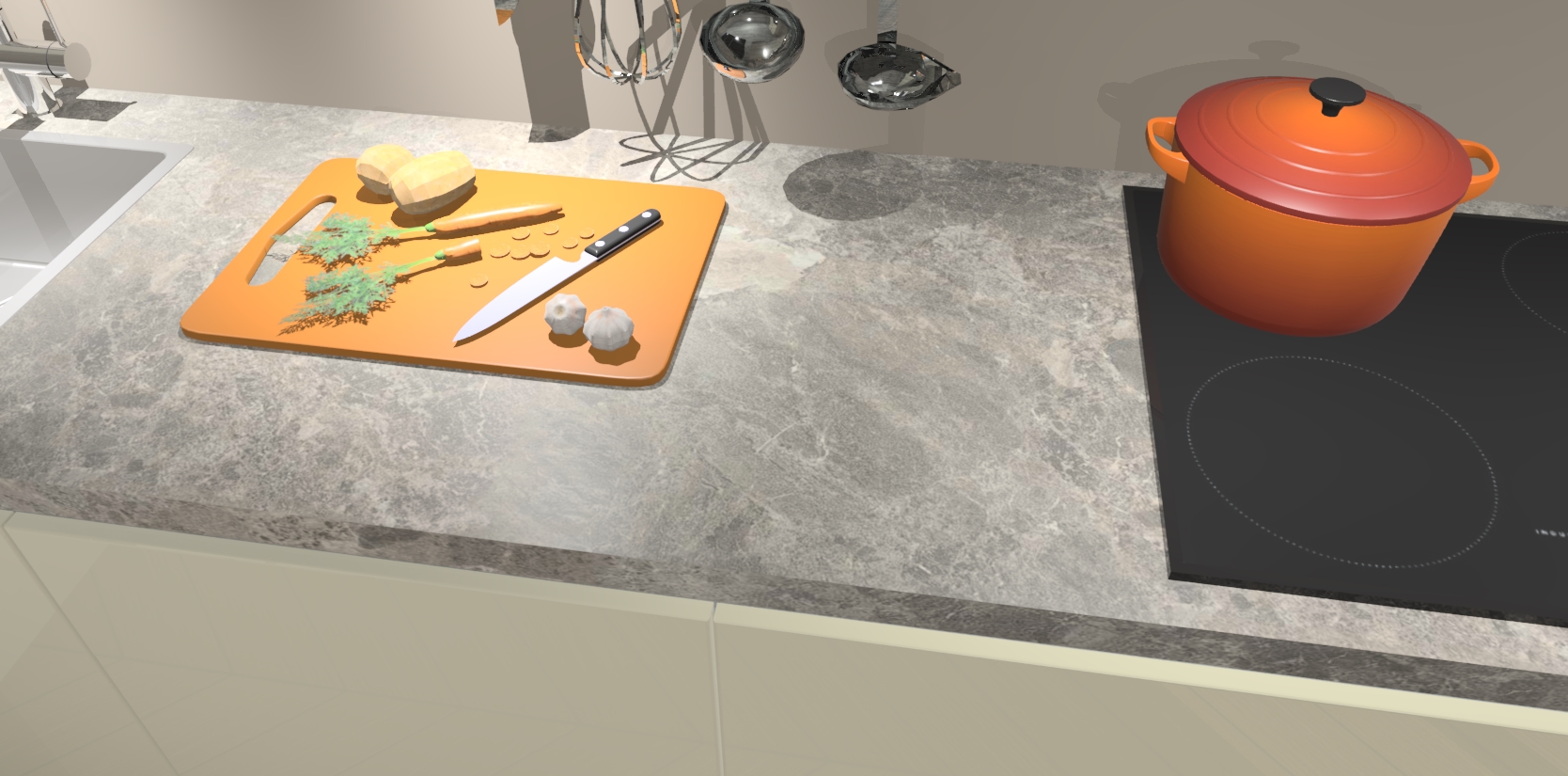 - Uitsparing van kookplaat, spoelbak en kraan dient u zelf te verzorgen.