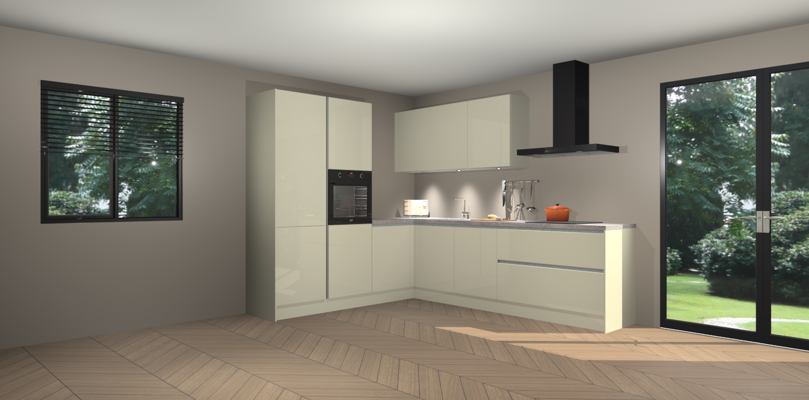 Met de magnolia hoogglans greeploze keuken Parla Maakt u van uw keuken het pronkstuk van uw huis. Stijlvol en toch praktisch, de nieuwste look voor wie meer waarde en charme aan zijn huis wil toevoegen. Met prachtige zwarte handgrepen die zich lenen voor een klassieke stijlbron, zal u niet teleurgesteld zijn in het resultaat. De soft-close deurscharnieren geven een gevoel van luxe omdat ze zachtjes bewegen zonder storende of krakende geluiden te veroorzaken.