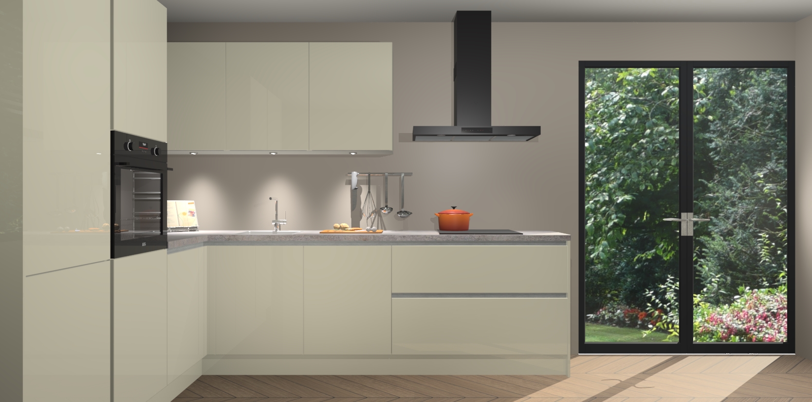 Maak kennis met de magnolia hoogglans greeploze keuken Parla - de perfecte aanvulling voor uw moderne keuken! Ervaar tijdloos design, elegantie en een chique uitstraling met onze zwarte handgrepen, soft-close deuren en veel opbergruimte. Dit alles wordt aangeboden tegen een vaste lage prijs voor ongeëvenaarde Duitse keukenkwaliteit!