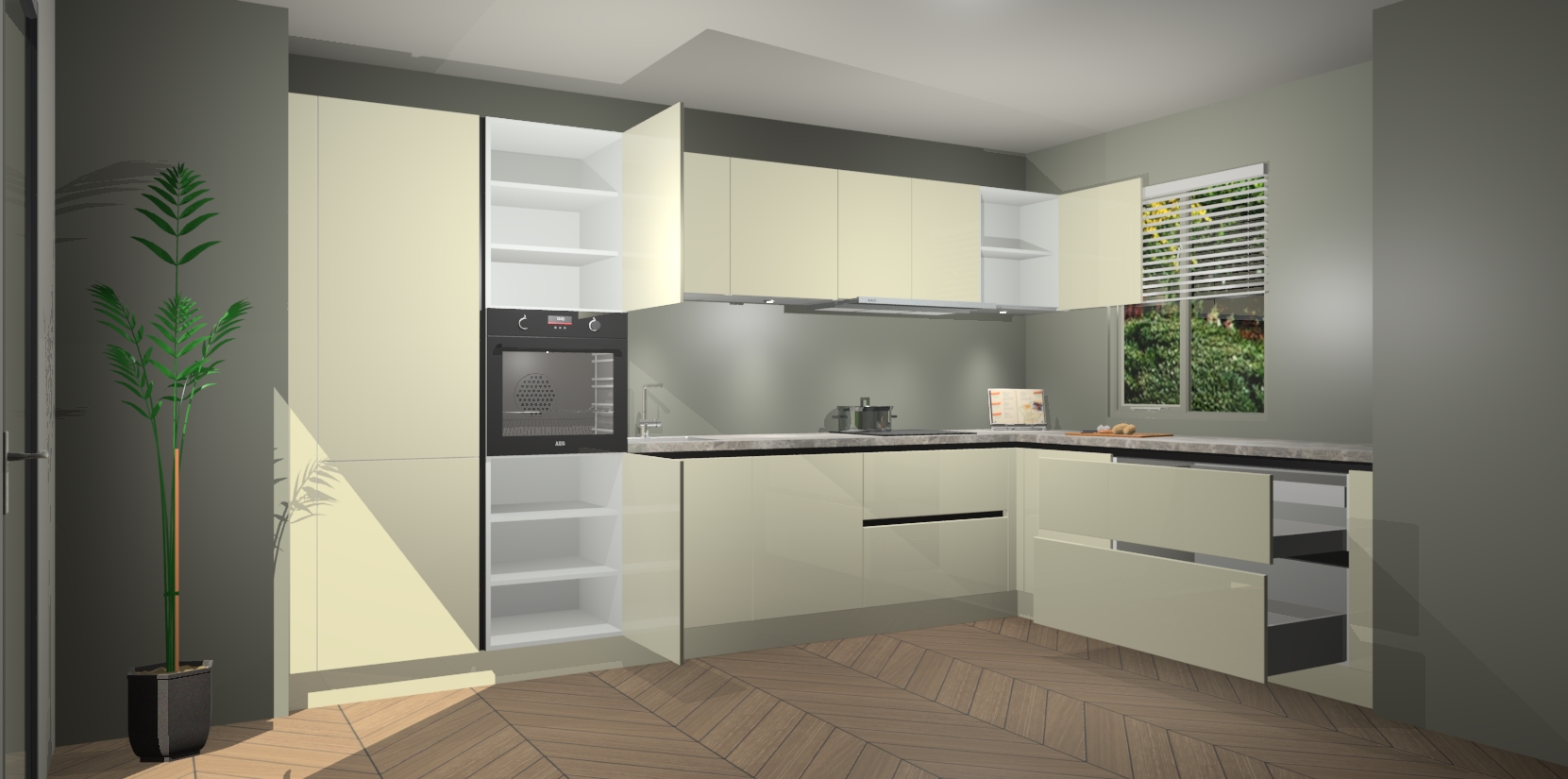 Inclusief plinten, stelpoten en werkblad