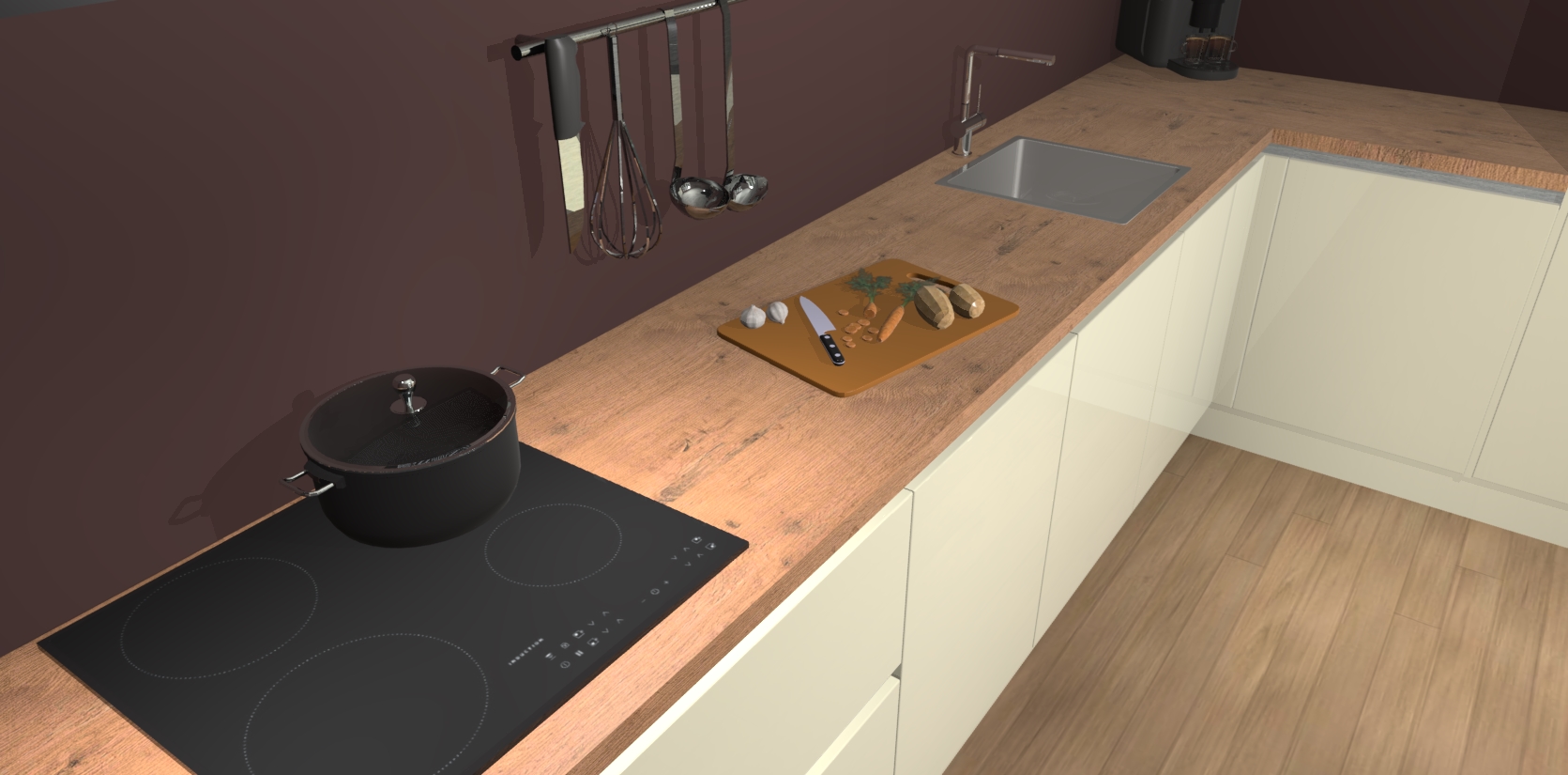 - Uitsparing van kookplaat, spoelbak en kraan dient u zelf te verzorgen.