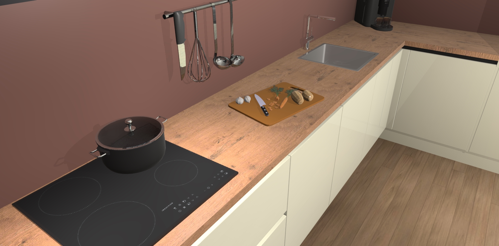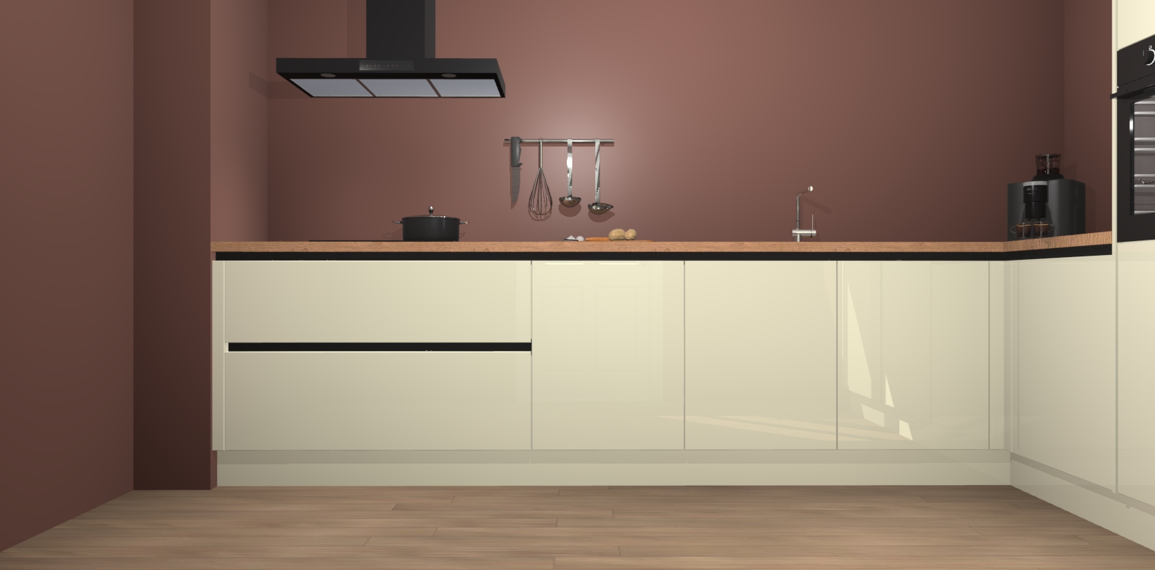 Inclusief plinten, stelpoten en werkblad