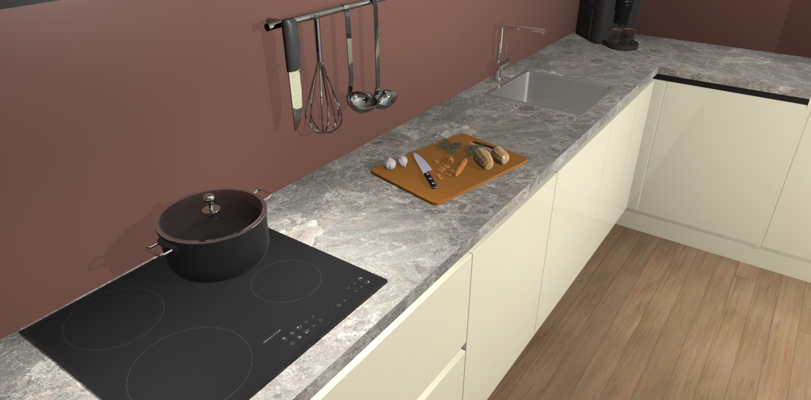 - Uitsparing van kookplaat, spoelbak en kraan dient u zelf te verzorgen.