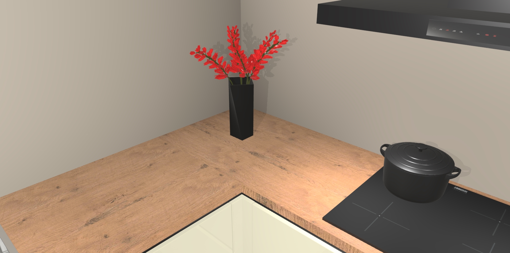 - Bij een hoekwerkblad zijn de hoeken in gevreesd en op maat gemaakt