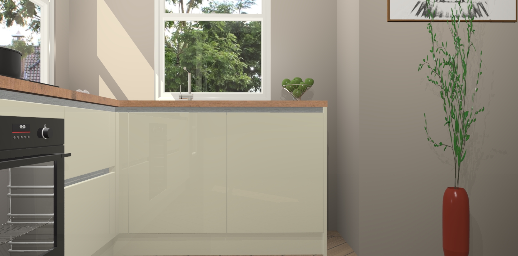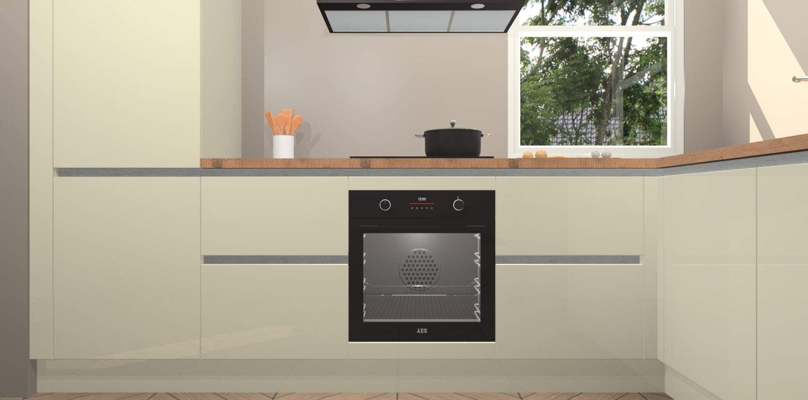 Wat maakt deze keuken zo bijzonder? Ten eerste geeft het houten werkblad uw ruimte een onmiskenbaar klassieke uitstraling. De natuurlijke afwerking roept warmte en elegantie op die nooit uit de mode zullen raken. Bovendien is het gemakkelijk schoon te houden en te onderhouden, zodat je er jarenlang plezier van kunt hebben. Als u op zoek bent naar extra gemak in uw keuken, dan heeft u bij het plaatsen van een bestelling bij ons ook de optie om uw toestellen te upgraden naar AEG-modellen - zo haalt u moderne innovatie van topmerken in apparatentechnologie rechtstreeks in huis.