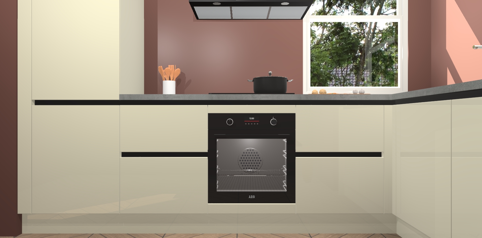Wat maakt deze keuken zo bijzonder? Ten eerste geeft het houten werkblad uw ruimte een onmiskenbaar klassieke uitstraling. De natuurlijke afwerking roept warmte en elegantie op die nooit uit de mode zullen raken. Bovendien is het gemakkelijk schoon te houden en te onderhouden, zodat je er jarenlang plezier van kunt hebben. Als u op zoek bent naar extra gemak in uw keuken, dan heeft u bij het plaatsen van een bestelling bij ons ook de optie om uw toestellen te upgraden naar AEG-modellen - zo haalt u moderne innovatie van topmerken in apparatentechnologie rechtstreeks in huis.