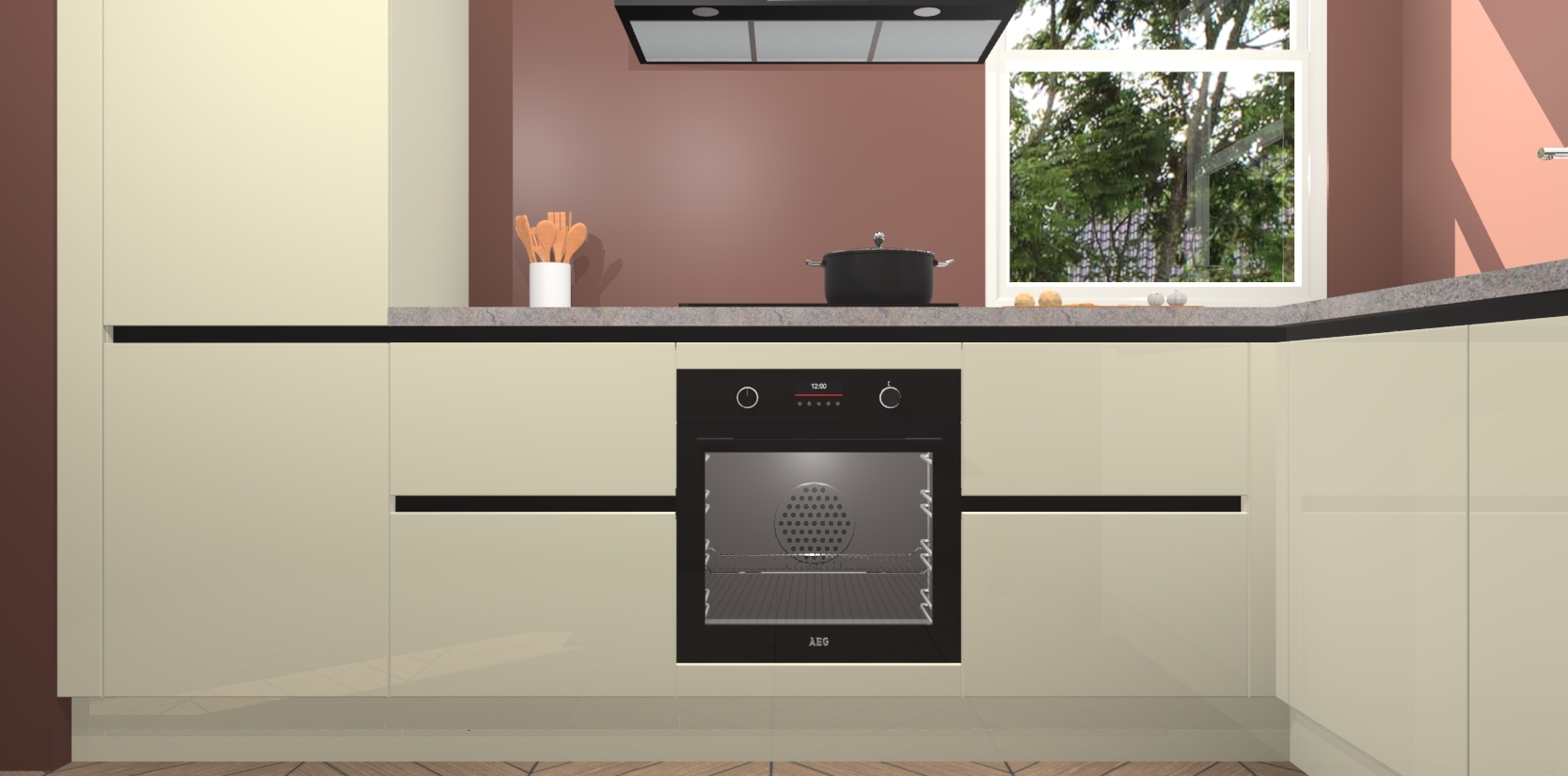 Wat maakt deze keuken zo bijzonder? Ten eerste geeft het houten werkblad uw ruimte een onmiskenbaar klassieke uitstraling. De natuurlijke afwerking roept warmte en elegantie op die nooit uit de mode zullen raken. Bovendien is het gemakkelijk schoon te houden en te onderhouden, zodat je er jarenlang plezier van kunt hebben. Als u op zoek bent naar extra gemak in uw keuken, dan heeft u bij het plaatsen van een bestelling bij ons ook de optie om uw toestellen te upgraden naar AEG-modellen - zo haalt u moderne innovatie van topmerken in apparatentechnologie rechtstreeks in huis.