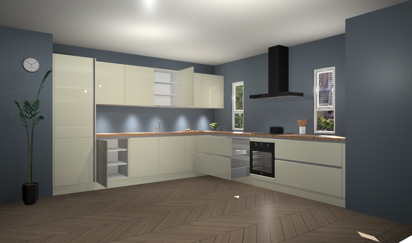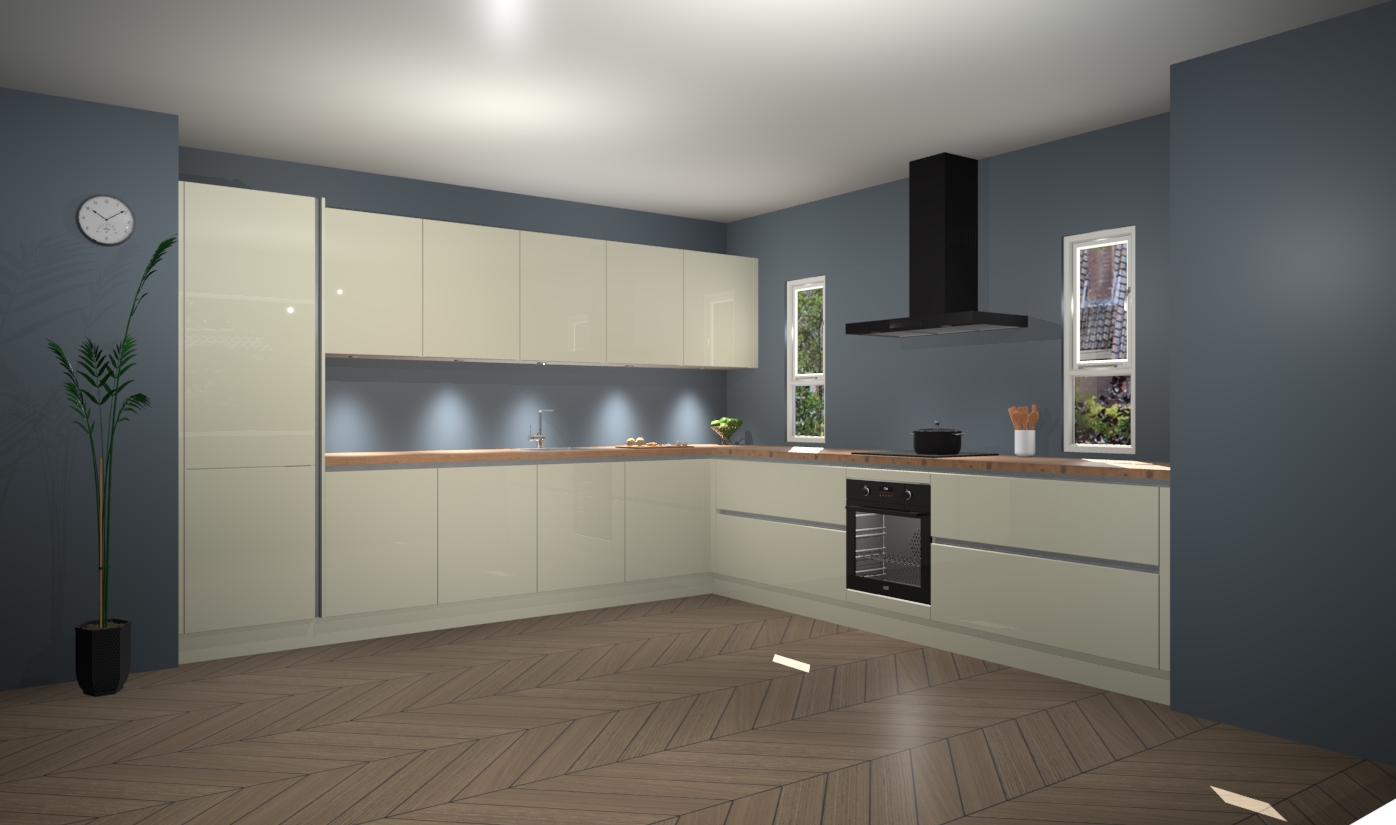 De magnolia hoogglans greeploze keuken is een ideale hoekkeuken en heeft alle functies en apparatuur die u maar nodig kunt hebben. Bij de bestelling krijgt u een oven, inductiekookplaat, afzuigkap, vaatwasser en koelkast - deze kunnen desgewenst eenvoudig worden uitgebreid naar AEG na bestellen. Elke kast wordt ook voor gemonteerd geleverd met soft close deuren die jarenlang gebruik beloven. Stelt u zich voor dat u geen gedoe heeft met vervelende montage - vanaf het moment dat u uw bestelling plaats, duurt het slechts 7 weken voor het bij u thuis geleverd wordt.