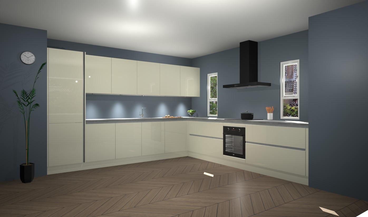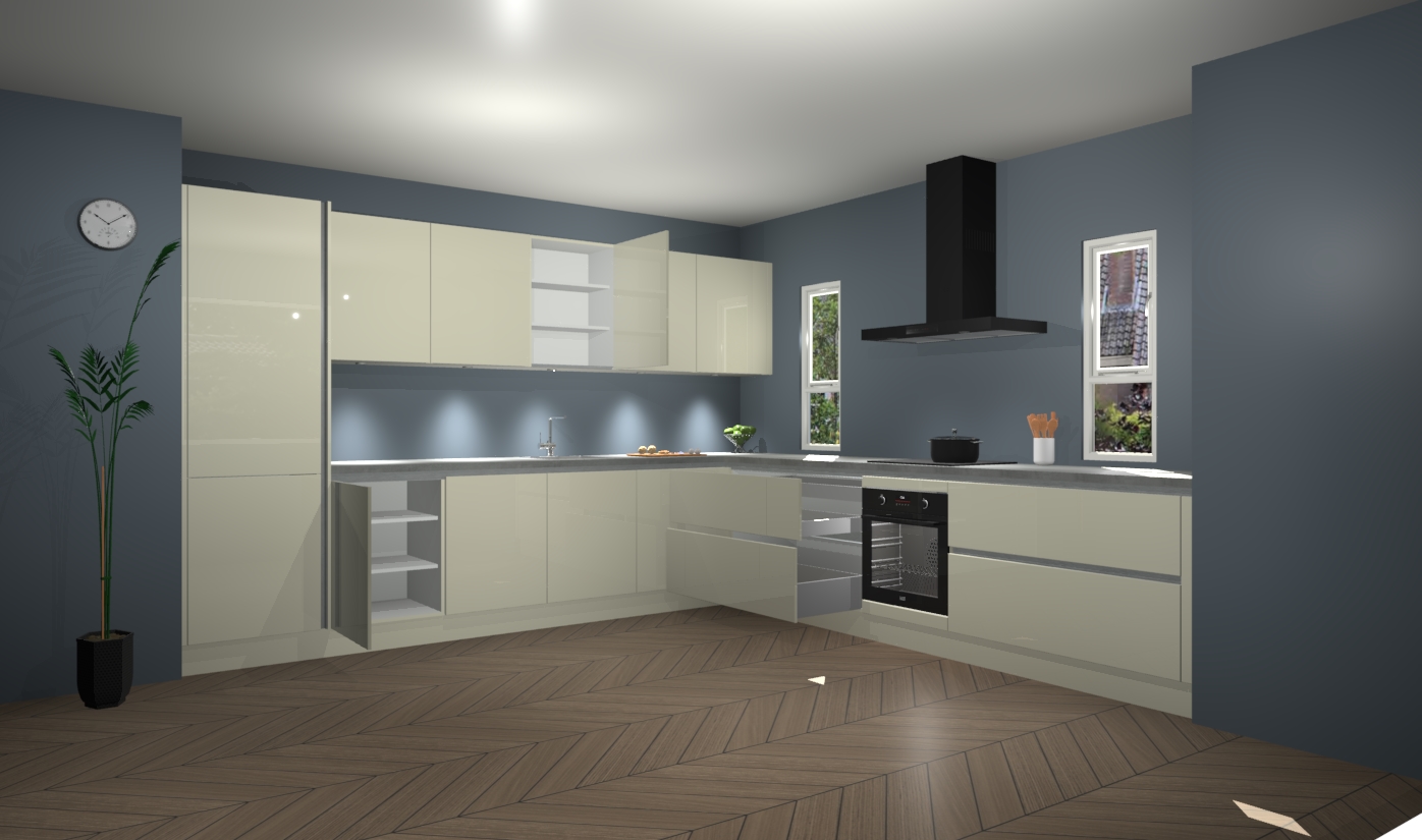 De magnolia hoogglans greeploze keuken is een ideale hoekkeuken en heeft alle functies en apparatuur die u maar nodig kunt hebben. Bij de bestelling krijgt u een oven, inductiekookplaat, afzuigkap, vaatwasser en koelkast - deze kunnen desgewenst eenvoudig worden uitgebreid naar AEG na bestellen. Elke kast wordt ook voor gemonteerd geleverd met soft close deuren die jarenlang gebruik beloven. Stelt u zich voor dat u geen gedoe heeft met vervelende montage - vanaf het moment dat u uw bestelling plaats, duurt het slechts 7 weken voor het bij u thuis geleverd wordt.