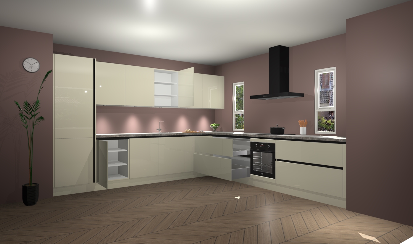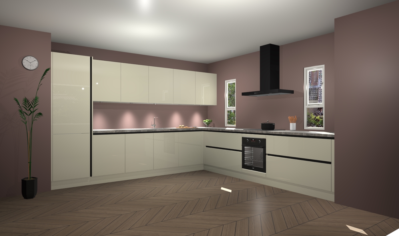 De magnolia hoogglans greeploze keuken is een ideale hoekkeuken en heeft alle functies en apparatuur die u maar nodig kunt hebben. Bij de bestelling krijgt u een oven, inductiekookplaat, afzuigkap, vaatwasser en koelkast - deze kunnen desgewenst eenvoudig worden uitgebreid naar AEG na bestellen. Elke kast wordt ook voor gemonteerd geleverd met soft close deuren die jarenlang gebruik beloven. Stelt u zich voor dat u geen gedoe heeft met vervelende montage - vanaf het moment dat u uw bestelling plaats, duurt het slechts 7 weken voor het bij u thuis geleverd wordt.
