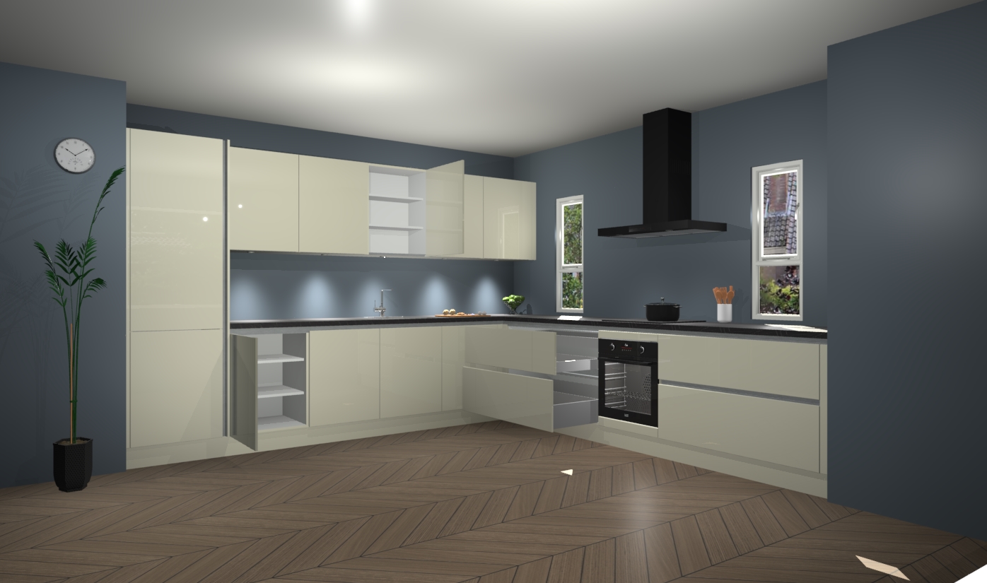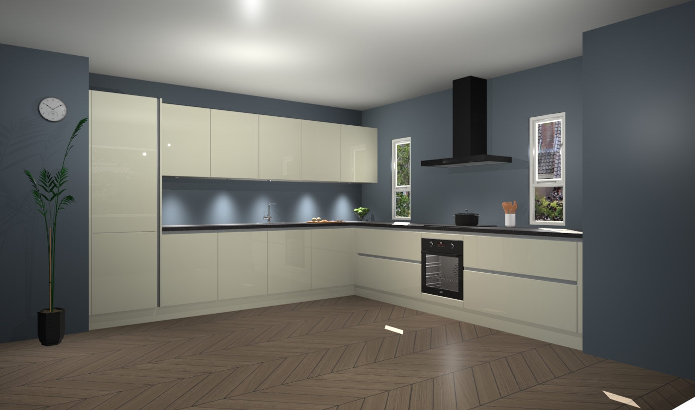 De magnolia hoogglans greeploze keuken is een ideale hoekkeuken en heeft alle functies en apparatuur die u maar nodig kunt hebben. Bij de bestelling krijgt u een oven, inductiekookplaat, afzuigkap, vaatwasser en koelkast - deze kunnen desgewenst eenvoudig worden uitgebreid naar AEG na bestellen. Elke kast wordt ook voor gemonteerd geleverd met soft close deuren die jarenlang gebruik beloven. Stelt u zich voor dat u geen gedoe heeft met vervelende montage - vanaf het moment dat u uw bestelling plaats, duurt het slechts 7 weken voor het bij u thuis geleverd wordt.