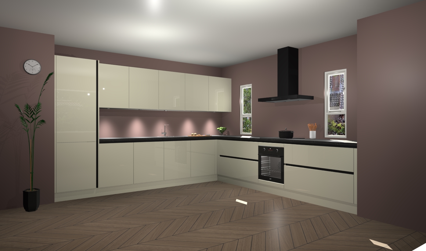 De magnolia hoogglans greeploze keuken is een ideale hoekkeuken en heeft alle functies en apparatuur die u maar nodig kunt hebben. Bij de bestelling krijgt u een oven, inductiekookplaat, afzuigkap, vaatwasser en koelkast - deze kunnen desgewenst eenvoudig worden uitgebreid naar AEG na bestellen. Elke kast wordt ook voor gemonteerd geleverd met soft close deuren die jarenlang gebruik beloven. Stelt u zich voor dat u geen gedoe heeft met vervelende montage - vanaf het moment dat u uw bestelling plaats, duurt het slechts 7 weken voor het bij u thuis geleverd wordt.