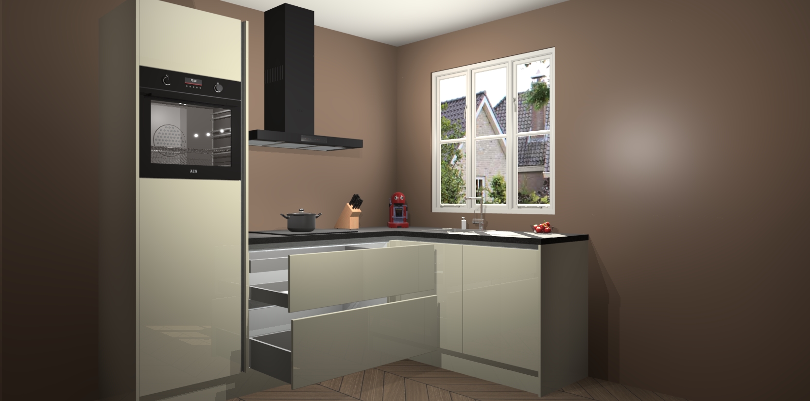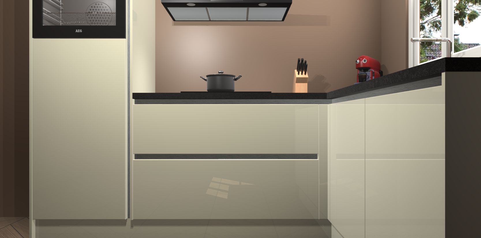 Dit model biedt u voldoende opbergruimte en vijf ingebouwde apparaten: een oven, inductiekookplaat, afzuigkap, vaatwasser en koelkast. Deze apparaten kunnen gemakkelijk worden geüpgrade naar AEG nadat u besteld heeft. De verschillende laden en kastjes bevatten softclose-deuren waardoor ze gezellig dichtvallen met een geruststellend helemaal geruisloos geluid. En dat is nog niet alles! We garanderen ook dat de prijs altijd laag blijft - dus haal nu uw Magnolia hoogglans greeploze keuken Victoria terwijl het kan.