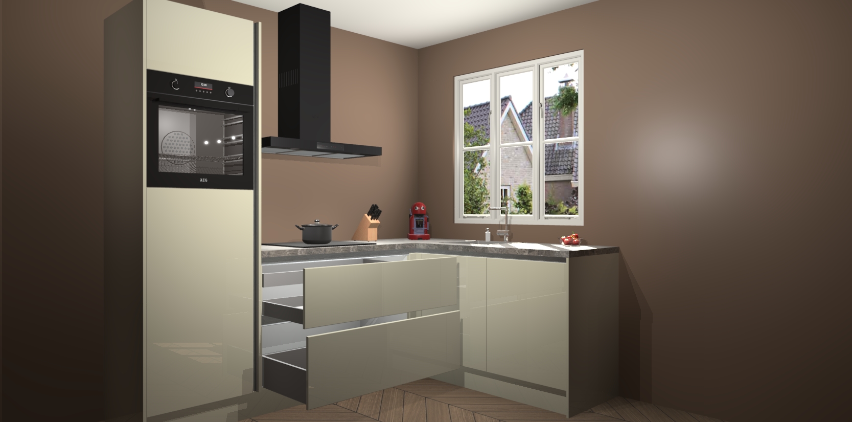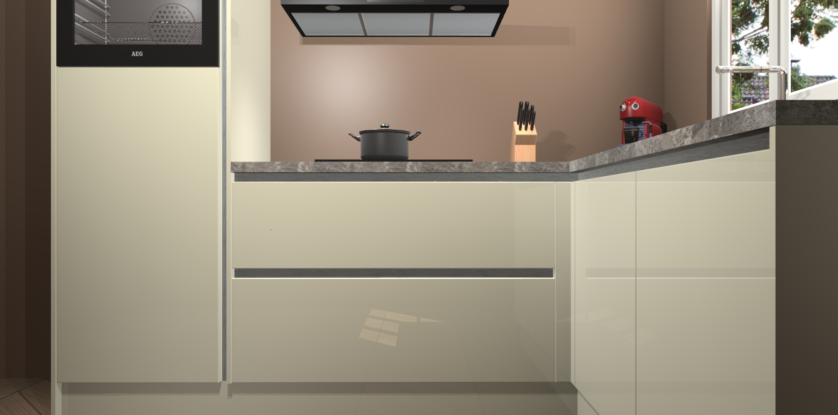Dit model biedt u voldoende opbergruimte en vijf ingebouwde apparaten: een oven, inductiekookplaat, afzuigkap, vaatwasser en koelkast. Deze apparaten kunnen gemakkelijk worden geüpgrade naar AEG nadat u besteld heeft. De verschillende laden en kastjes bevatten softclose-deuren waardoor ze gezellig dichtvallen met een geruststellend helemaal geruisloos geluid. En dat is nog niet alles! We garanderen ook dat de prijs altijd laag blijft - dus haal nu uw Magnolia hoogglans greeploze keuken Victoria terwijl het kan.