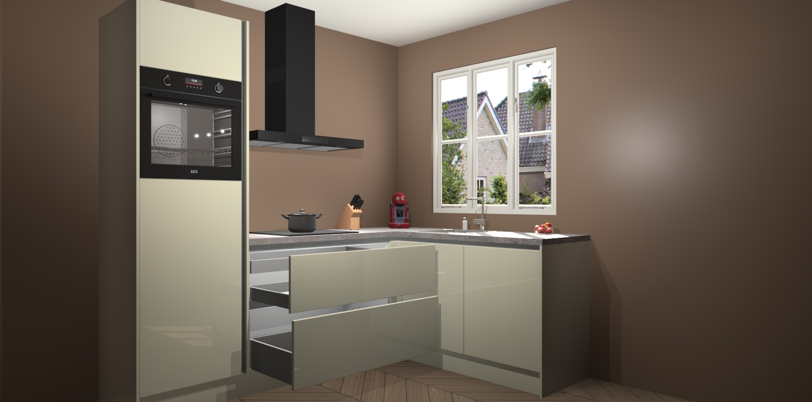 Dit model biedt u voldoende opbergruimte en vijf ingebouwde apparaten: een oven, inductiekookplaat, afzuigkap, vaatwasser en koelkast. Deze apparaten kunnen gemakkelijk worden geüpgrade naar AEG nadat u besteld heeft. De verschillende laden en kastjes bevatten softclose-deuren waardoor ze gezellig dichtvallen met een geruststellend helemaal geruisloos geluid. En dat is nog niet alles! We garanderen ook dat de prijs altijd laag blijft - dus haal nu uw Magnolia hoogglans greeploze keuken Victoria terwijl het kan.
