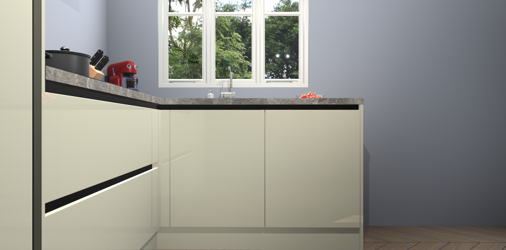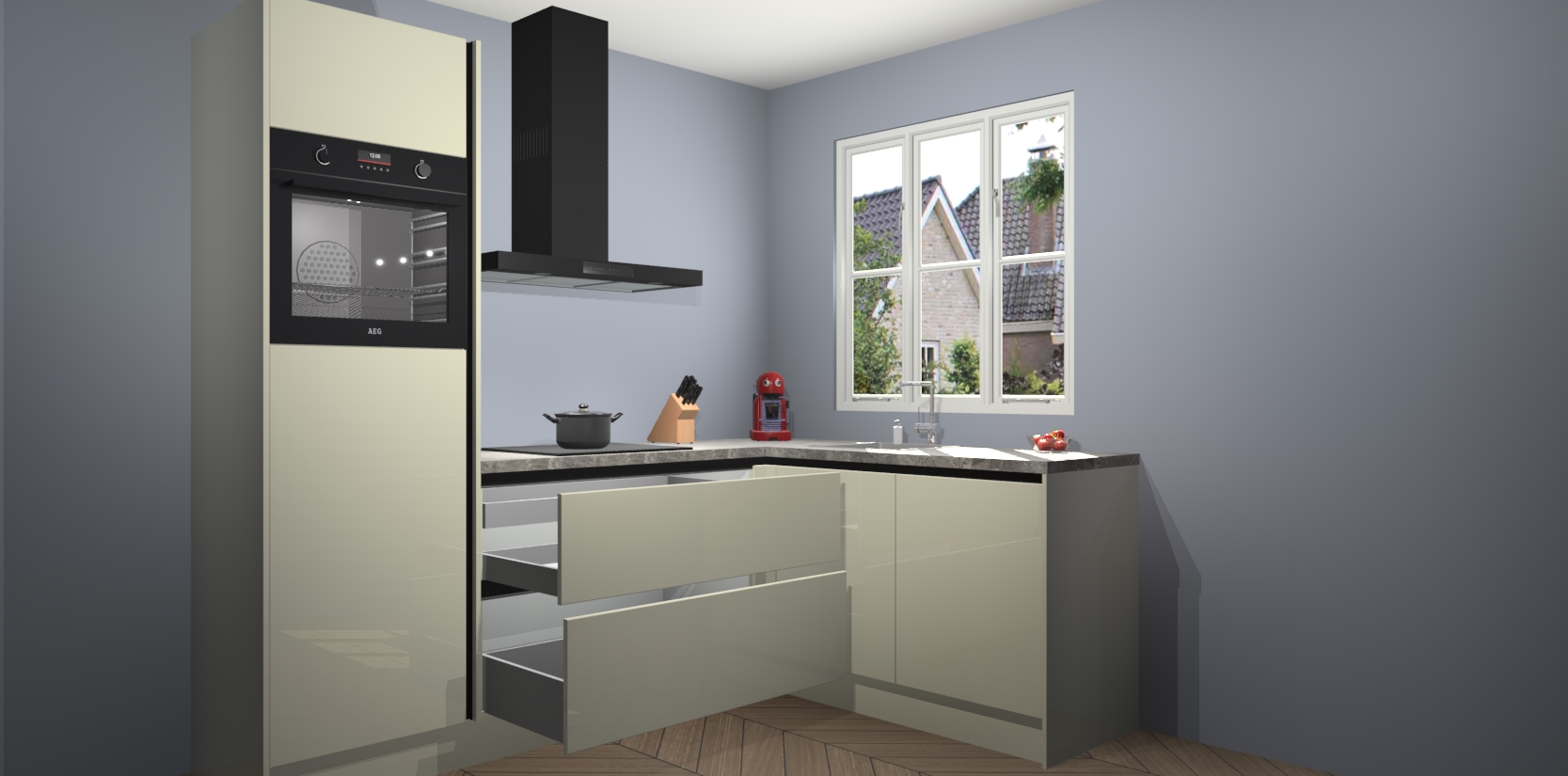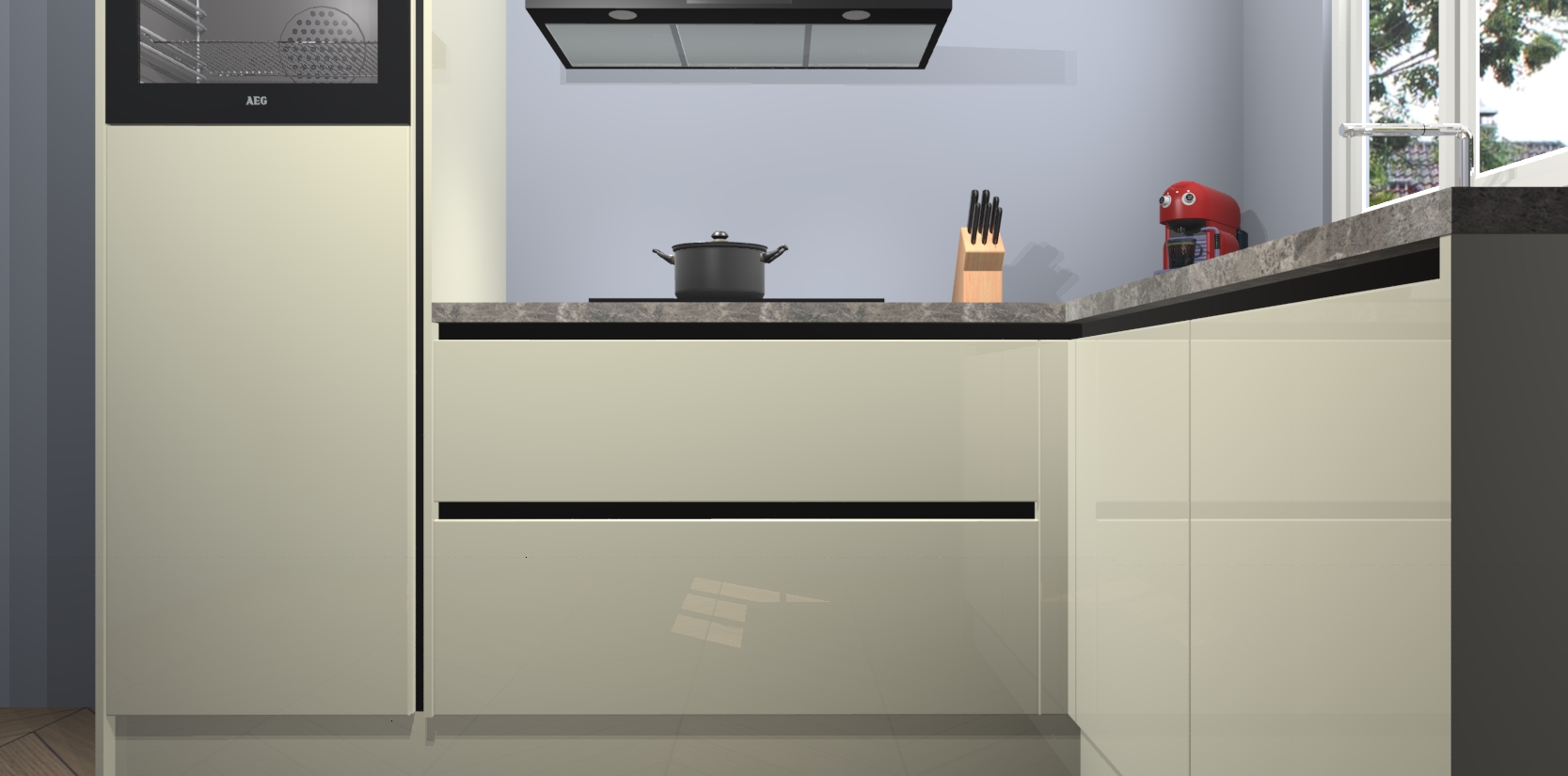 Dit model biedt u voldoende opbergruimte en vijf ingebouwde apparaten: een oven, inductiekookplaat, afzuigkap, vaatwasser en koelkast. Deze apparaten kunnen gemakkelijk worden geüpgrade naar AEG nadat u besteld heeft. De verschillende laden en kastjes bevatten softclose-deuren waardoor ze gezellig dichtvallen met een geruststellend helemaal geruisloos geluid. En dat is nog niet alles! We garanderen ook dat de prijs altijd laag blijft - dus haal nu uw Magnolia hoogglans greeploze keuken Victoria terwijl het kan.