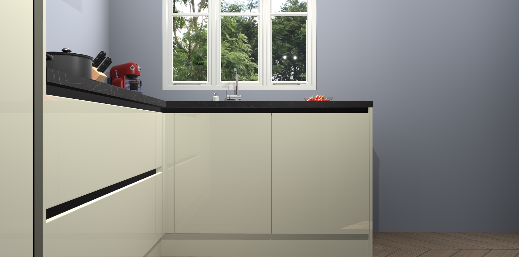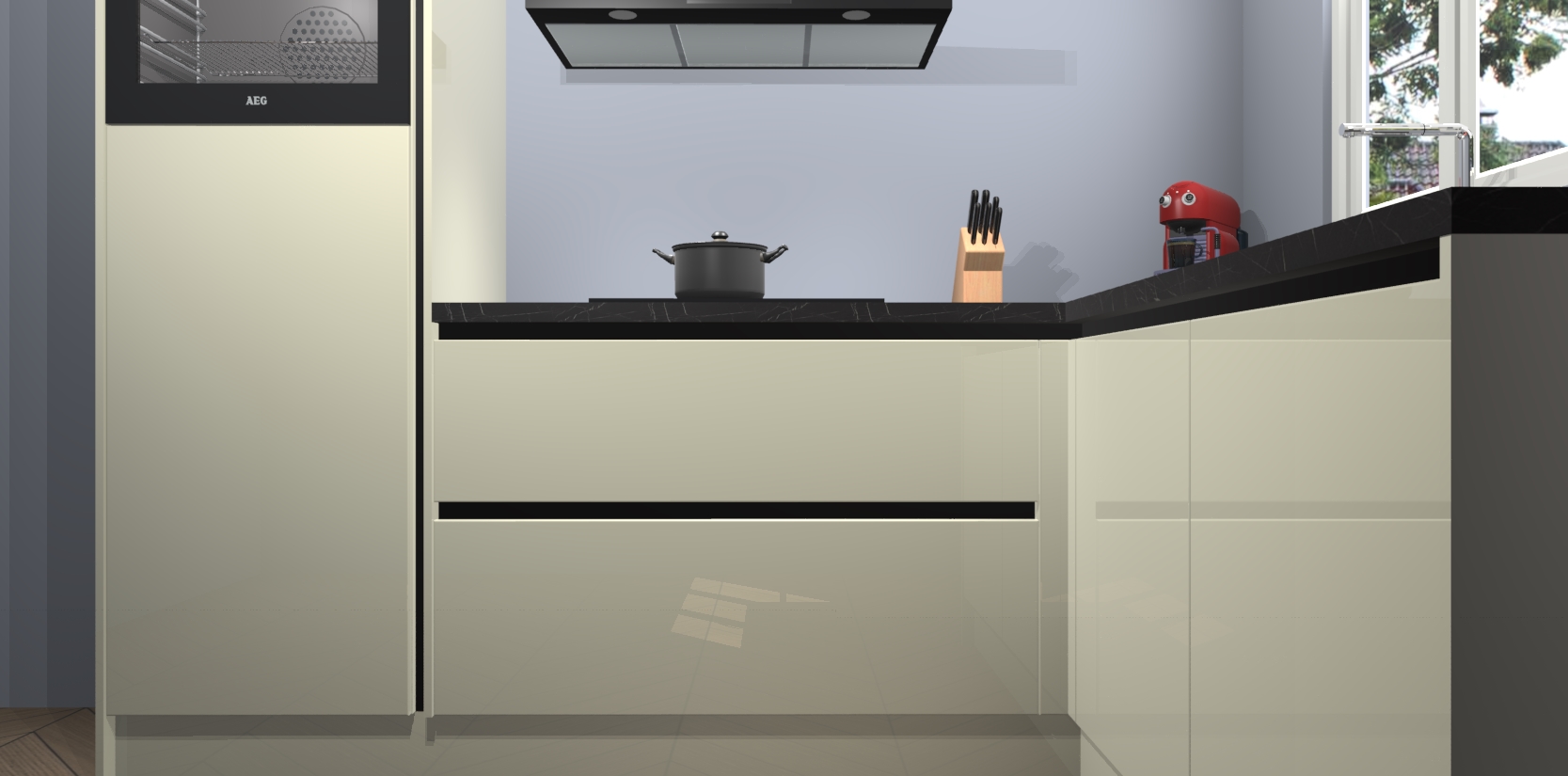 Dit model biedt u voldoende opbergruimte en vijf ingebouwde apparaten: een oven, inductiekookplaat, afzuigkap, vaatwasser en koelkast. Deze apparaten kunnen gemakkelijk worden geüpgrade naar AEG nadat u besteld heeft. De verschillende laden en kastjes bevatten softclose-deuren waardoor ze gezellig dichtvallen met een geruststellend helemaal geruisloos geluid. En dat is nog niet alles! We garanderen ook dat de prijs altijd laag blijft - dus haal nu uw Magnolia hoogglans greeploze keuken Victoria terwijl het kan.