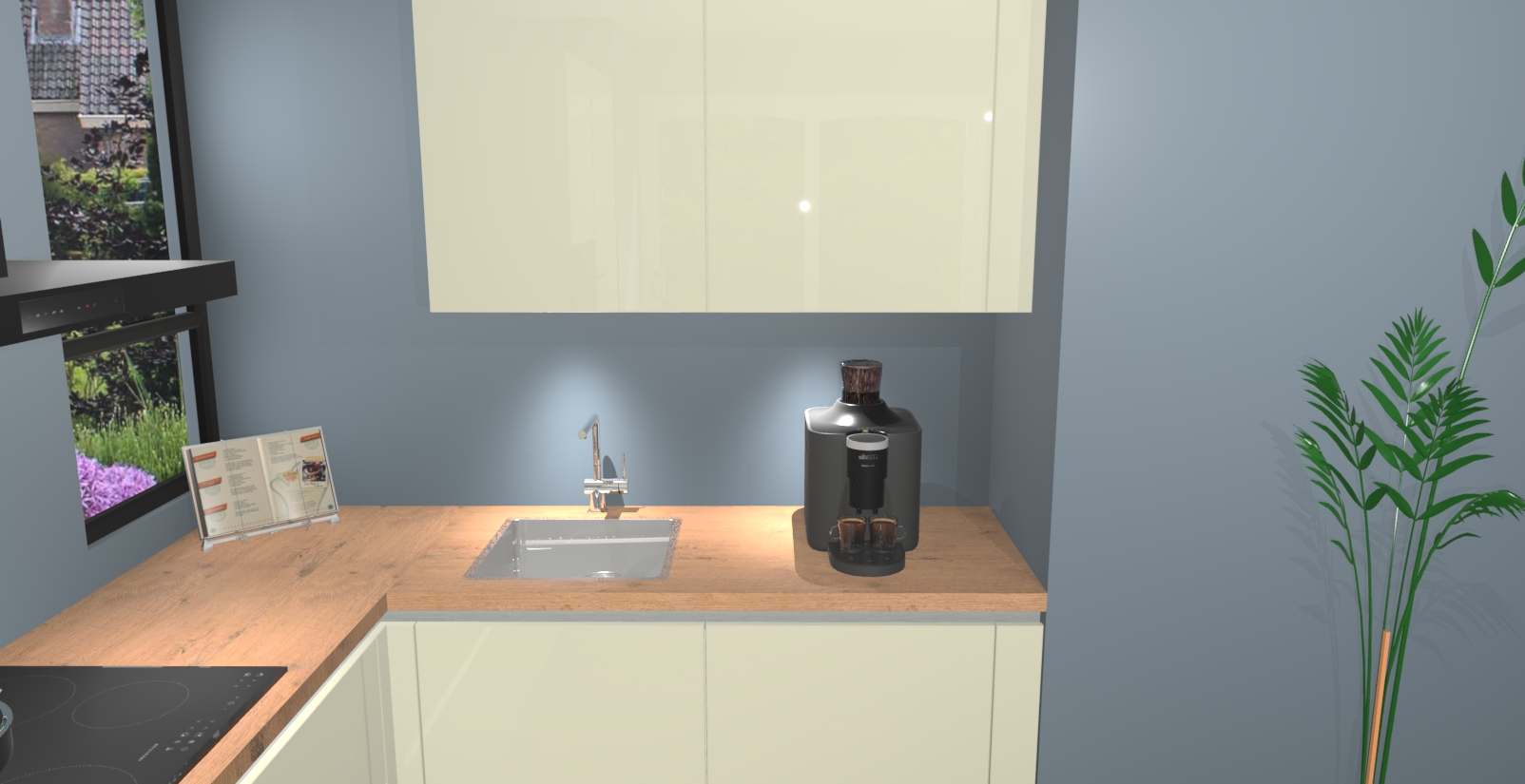 - De spoelbak is nog niet in gevreesd. Dit dient tijdens het werk gedaan te worden