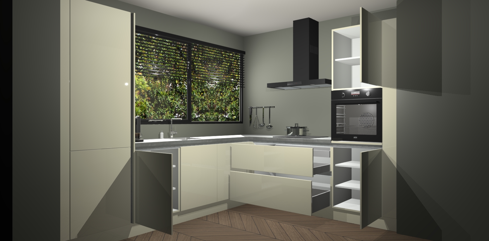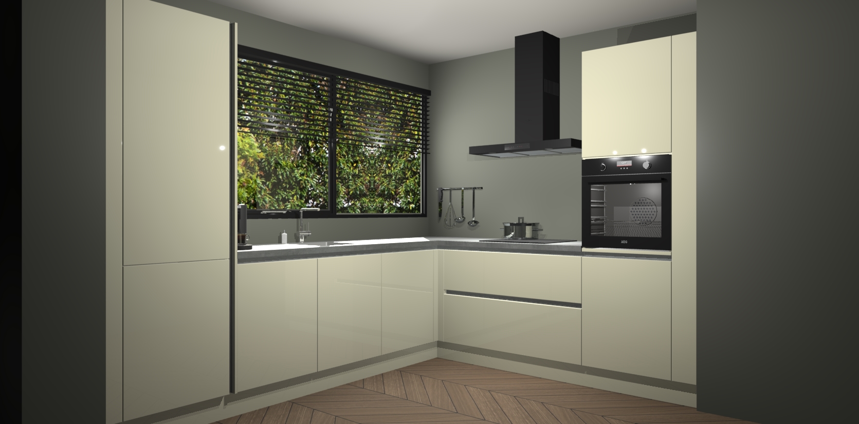 Met een modern, tijdloos design en ruime opslagruimte, zult u zich in no-time thuis voelen in uw nieuwe keuken. Uw leven wordt eenvoudiger met de soft-close deuren die voor het ultieme stille comfort zorgen - geen geluid dat u stoort terwijl u kookt. Ook is de keuken voorzien van 5 ingebouwde apparaten: een oven, inductie kookplaat, afzuigkap, vaatwasser en koelkast. Deze kunnen gemakkelijk na bestelling worden bijgewerkt naar AEG - waardoor uw luxe ervaring compleet is.