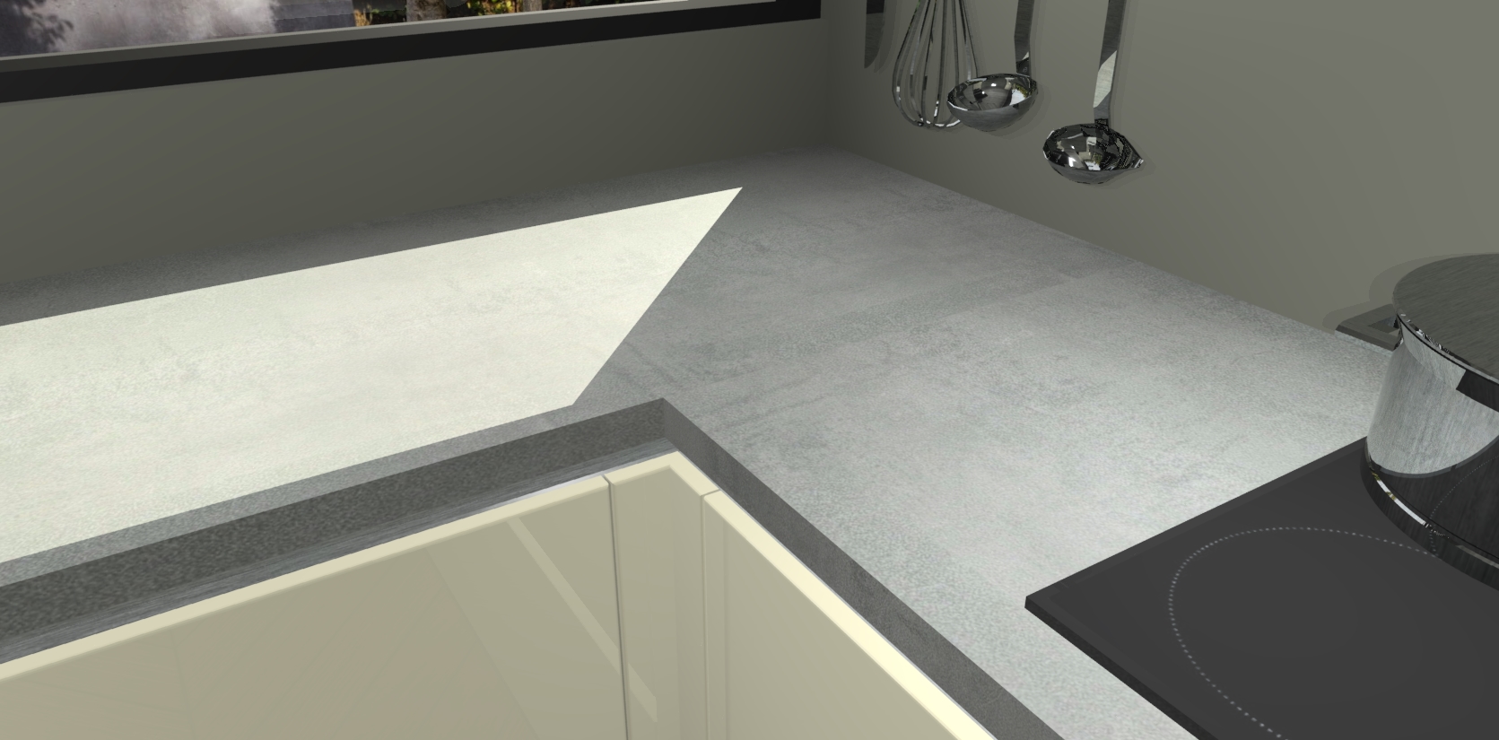 - Bij een hoekwerkblad zijn de hoeken in gevreesd en op maat gemaakt