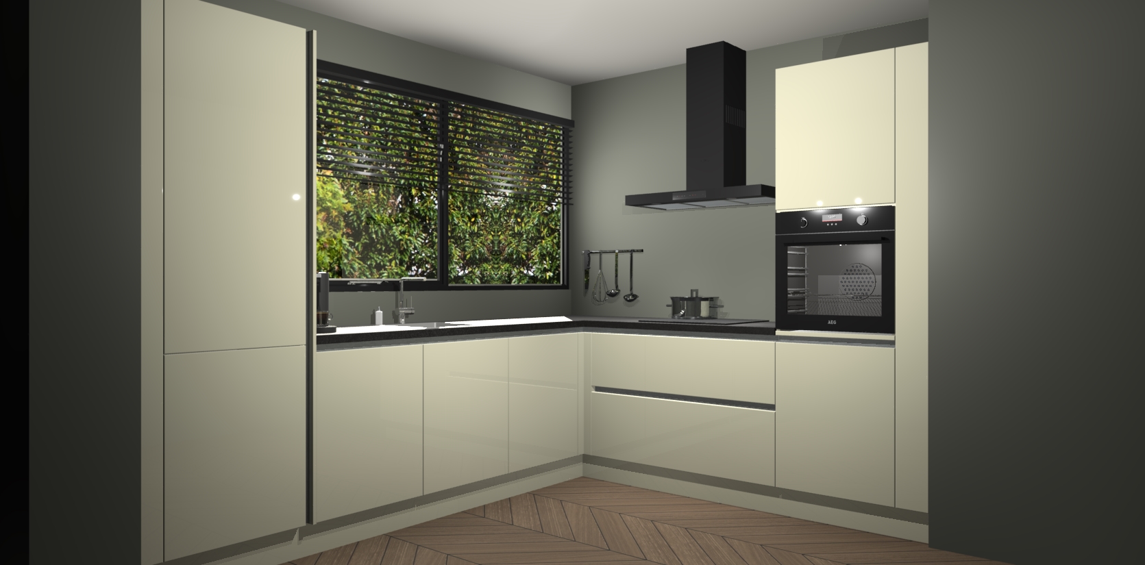 Met een modern, tijdloos design en ruime opslagruimte, zult u zich in no-time thuis voelen in uw nieuwe keuken. Uw leven wordt eenvoudiger met de soft-close deuren die voor het ultieme stille comfort zorgen - geen geluid dat u stoort terwijl u kookt. Ook is de keuken voorzien van 5 ingebouwde apparaten: een oven, inductie kookplaat, afzuigkap, vaatwasser en koelkast. Deze kunnen gemakkelijk na bestelling worden bijgewerkt naar AEG - waardoor uw luxe ervaring compleet is.