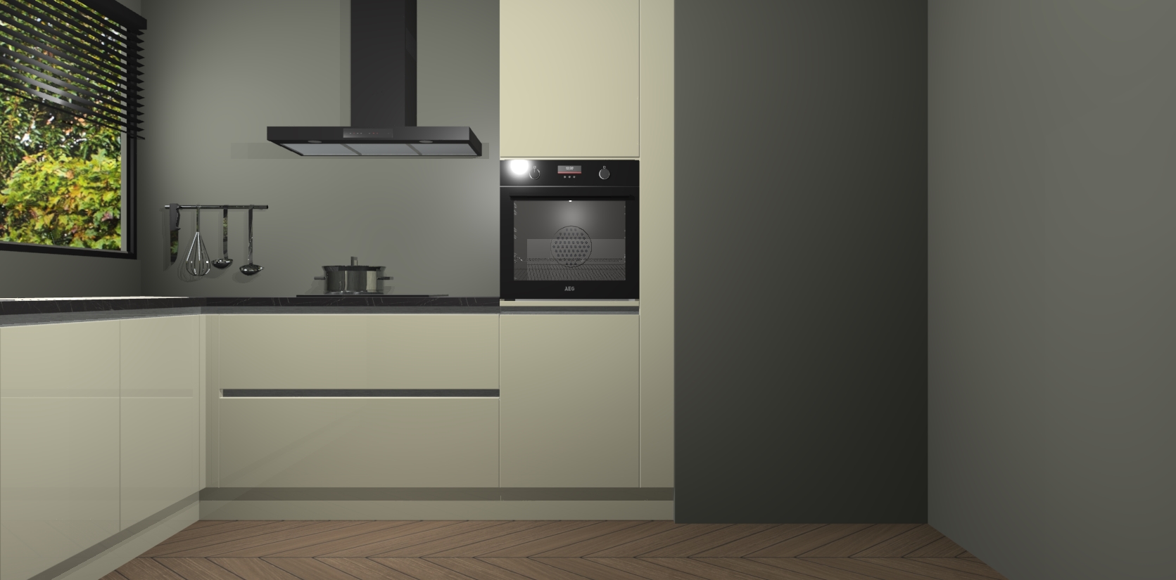 Met een modern, tijdloos design en ruime opslagruimte, zult u zich in no-time thuis voelen in uw nieuwe keuken. Uw leven wordt eenvoudiger met de soft-close deuren die voor het ultieme stille comfort zorgen - geen geluid dat u stoort terwijl u kookt. Ook is de keuken voorzien van 5 ingebouwde apparaten: een oven, inductie kookplaat, afzuigkap, vaatwasser en koelkast. Deze kunnen gemakkelijk na bestelling worden bijgewerkt naar AEG - waardoor uw luxe ervaring compleet is.