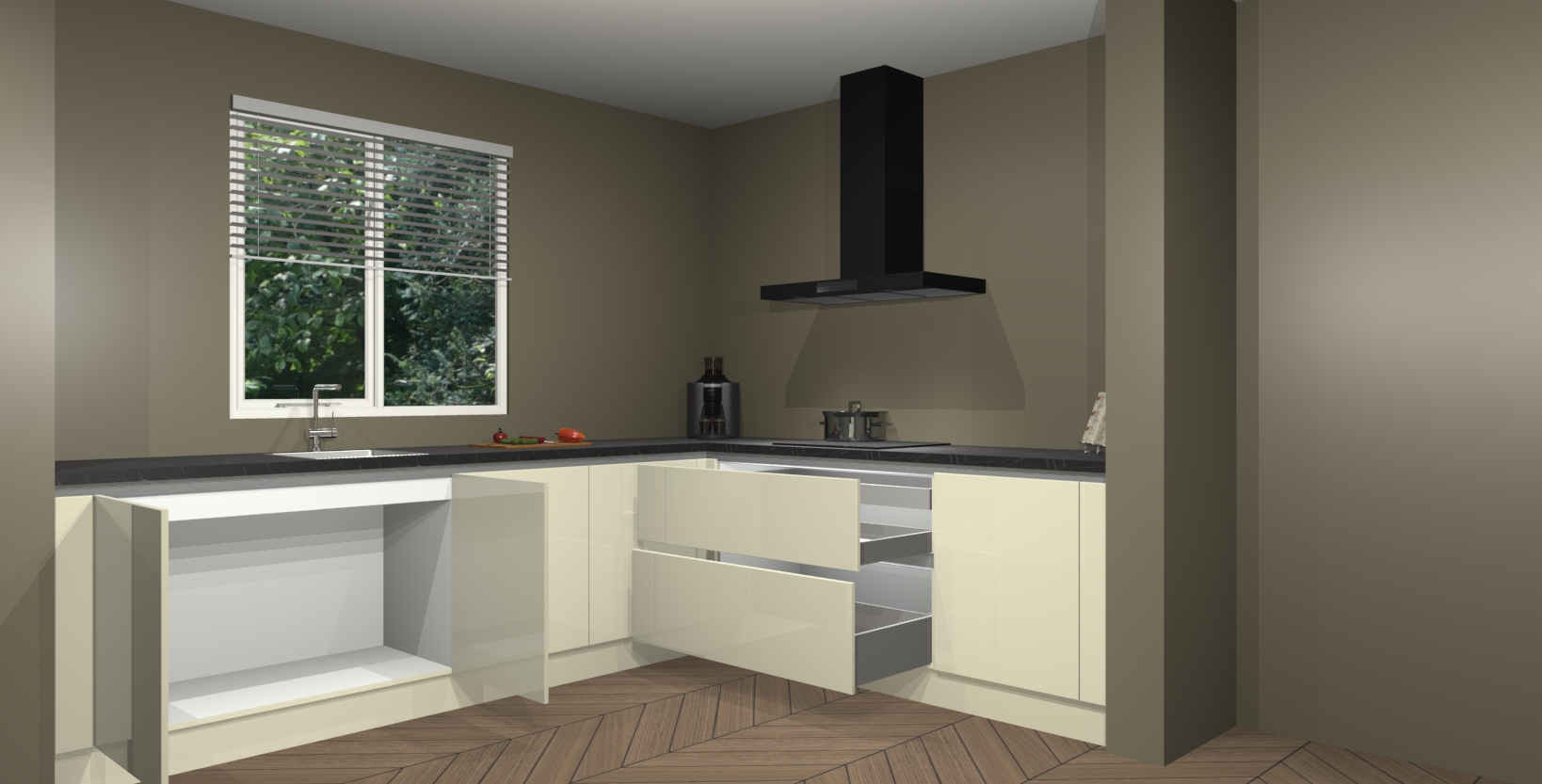 Hoekonderkast met le-mans systeem