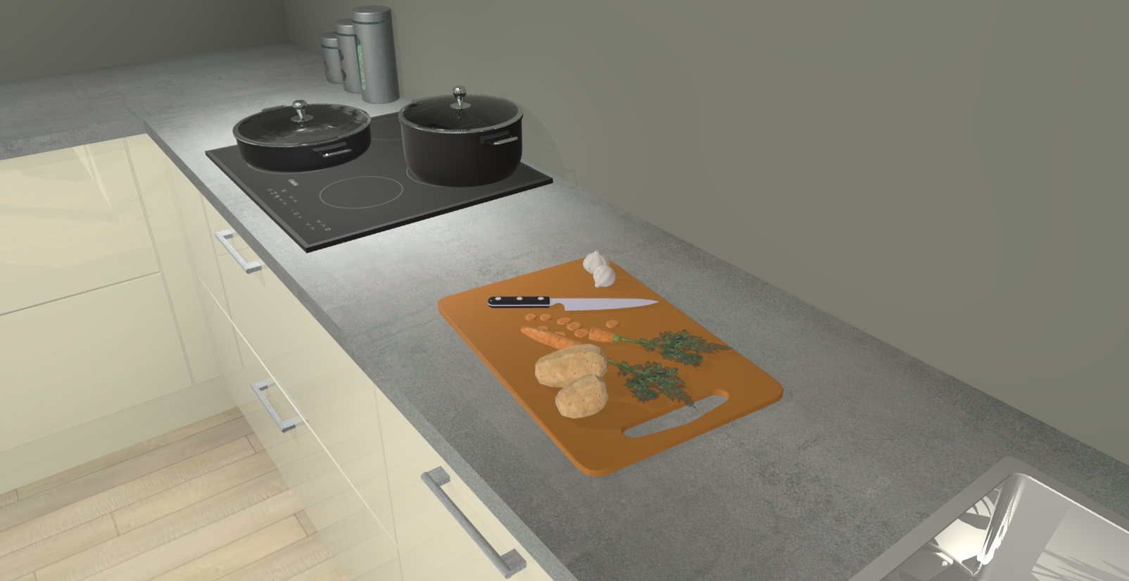 Inclusief plinten, stelpoten en werkblad