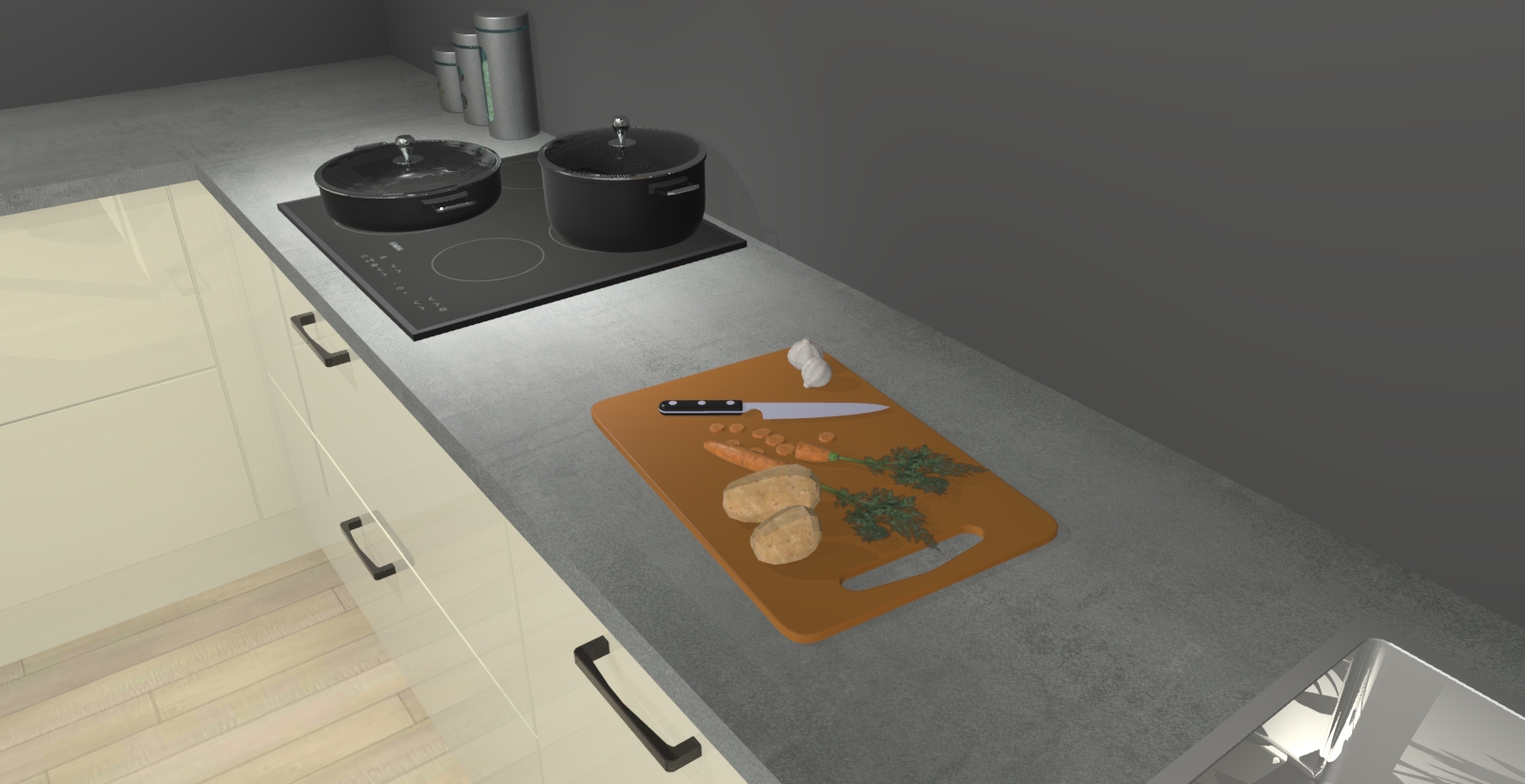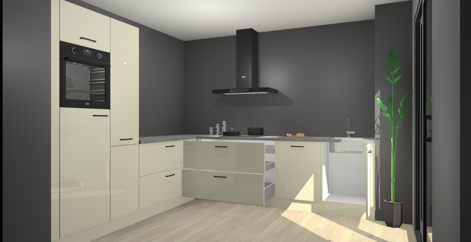Inclusief plinten, stelpoten en werkblad
