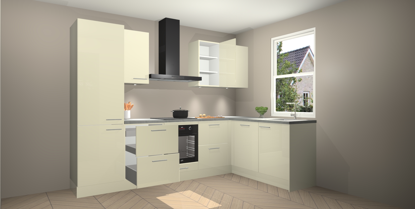 Inclusief plinten, stelpoten en werkblad