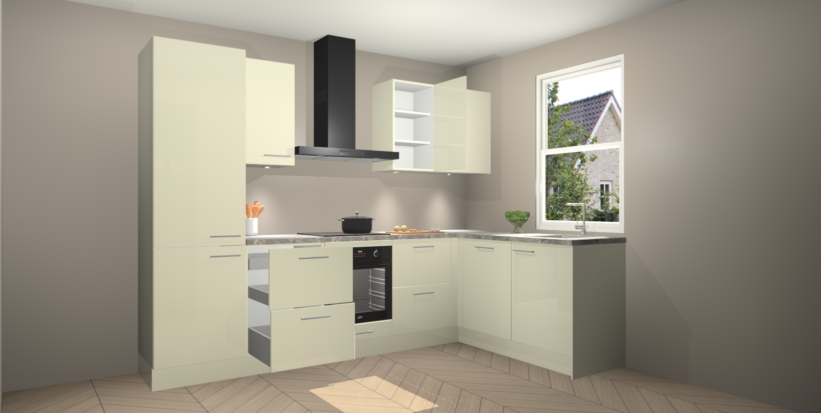 Inclusief plinten, stelpoten en werkblad