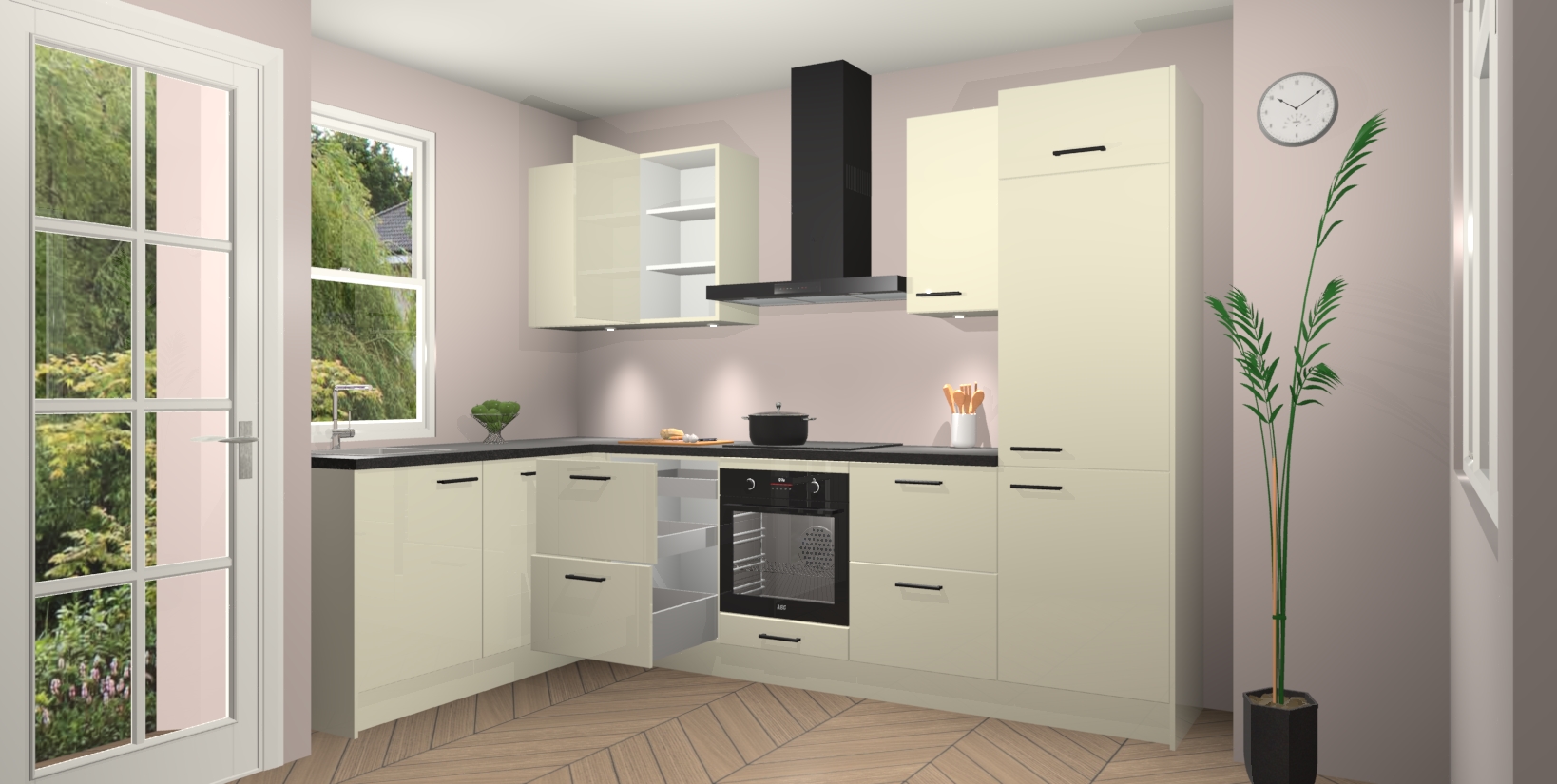 Bent u op zoek naar een strakke, moderne hoekkeuken die uw huis oppept en een moderne uitstraling geeft? Kijk dan niet verder dan de magnolia hoogglans keuken Beijing. Deze verbluffende hoekkeuken tilt hedendaags design naar een hoger niveau. Qua stijl is deze chique hoekkeuken voorzien van magnolia hoogglans accenten, om een strakke maar opvallende look te creëren. De binnenkant van de kasten is afgewerkt in dezelfde prachtige magnolia hoogglans kleur voor extra esthetische aantrekkingskracht.