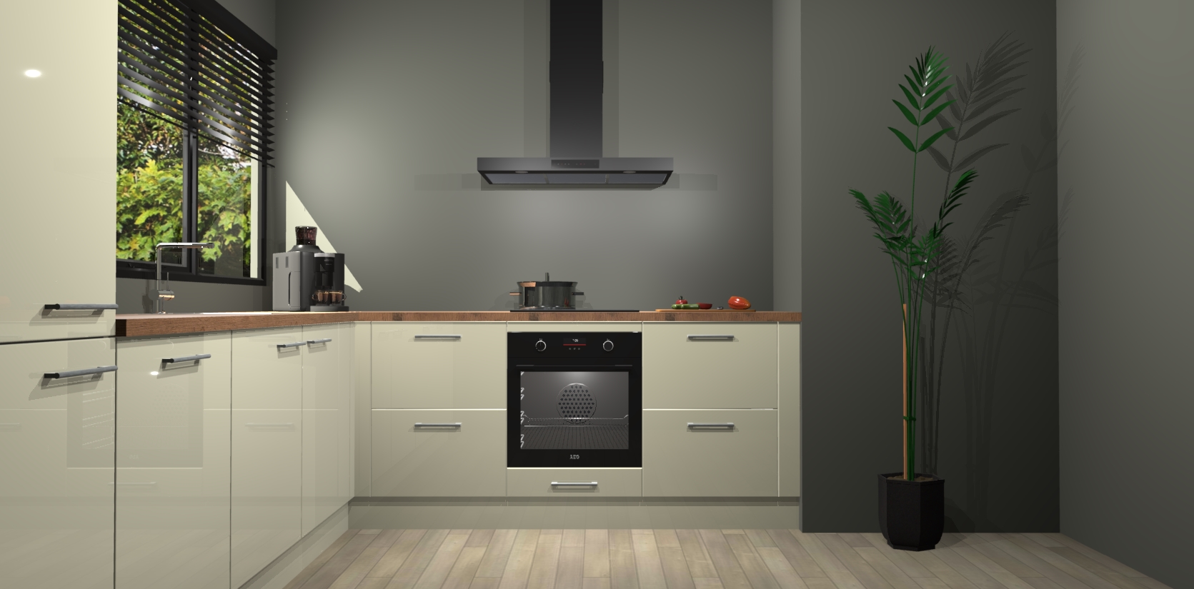 Met een modern, tijdloos design en ruime opslagruimte, zult u zich in no-time thuis voelen in uw nieuwe keuken. Uw leven wordt eenvoudiger met de soft-close deuren die voor het ultieme stille comfort zorgen - geen geluid dat u stoort terwijl u kookt. Ook is de keuken voorzien van 5 ingebouwde apparaten: een oven, inductie kookplaat, afzuigkap, vaatwasser en koelkast. Deze kunnen gemakkelijk na bestelling worden bijgewerkt naar AEG - waardoor uw luxe ervaring compleet is.