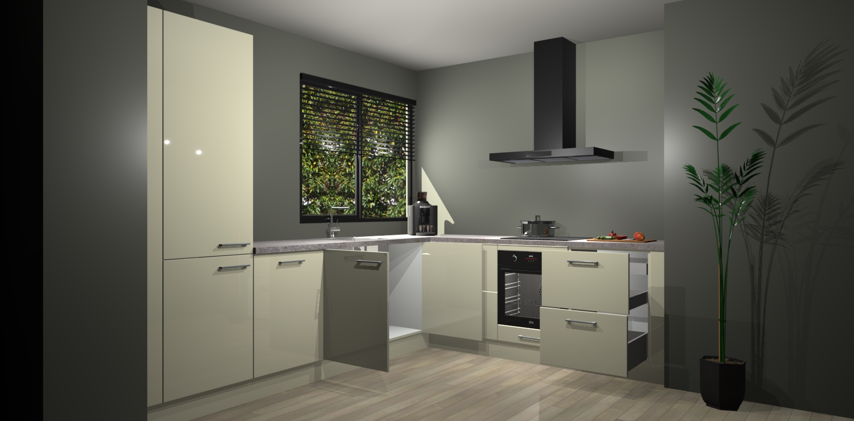 Met een modern, tijdloos design en ruime opslagruimte, zult u zich in no-time thuis voelen in uw nieuwe keuken. Uw leven wordt eenvoudiger met de soft-close deuren die voor het ultieme stille comfort zorgen - geen geluid dat u stoort terwijl u kookt. Ook is de keuken voorzien van 5 ingebouwde apparaten: een oven, inductie kookplaat, afzuigkap, vaatwasser en koelkast. Deze kunnen gemakkelijk na bestelling worden bijgewerkt naar AEG - waardoor uw luxe ervaring compleet is.