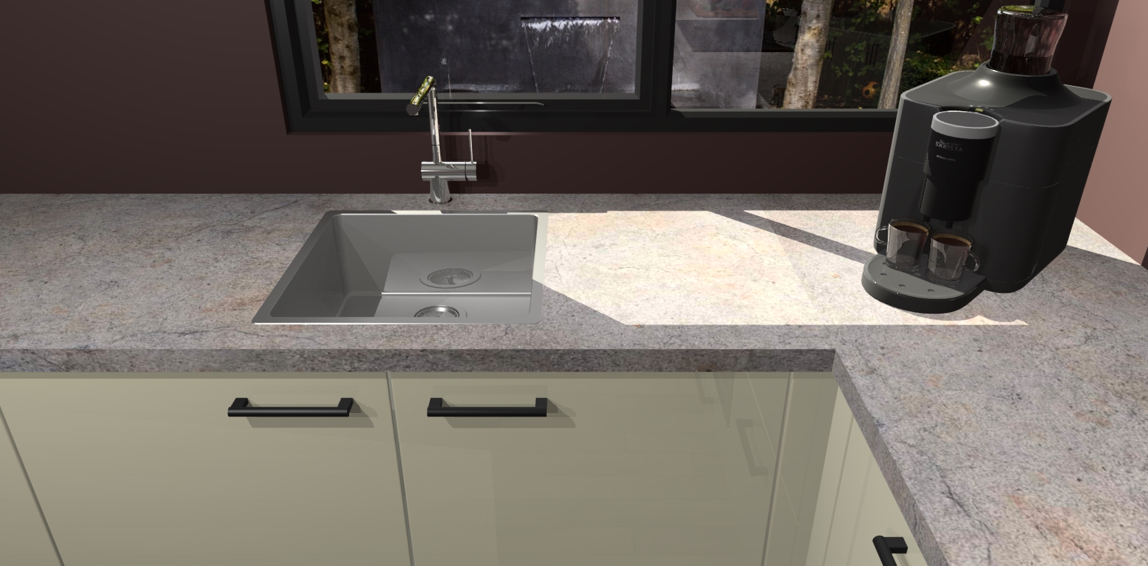 - De spoelbak is nog niet in gevreesd. Dit dient tijdens het werk gedaan te worden