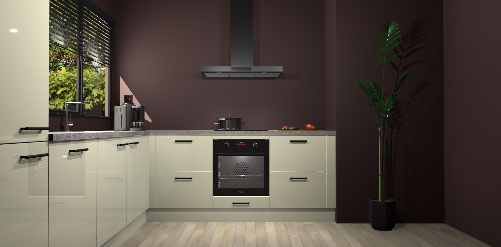 Met een modern, tijdloos design en ruime opslagruimte, zult u zich in no-time thuis voelen in uw nieuwe keuken. Uw leven wordt eenvoudiger met de soft-close deuren die voor het ultieme stille comfort zorgen - geen geluid dat u stoort terwijl u kookt. Ook is de keuken voorzien van 5 ingebouwde apparaten: een oven, inductie kookplaat, afzuigkap, vaatwasser en koelkast. Deze kunnen gemakkelijk na bestelling worden bijgewerkt naar AEG - waardoor uw luxe ervaring compleet is.