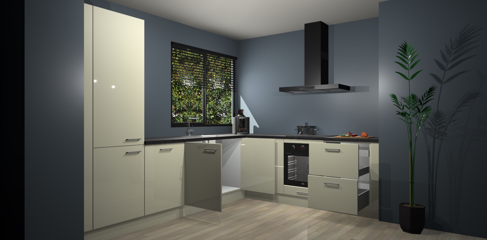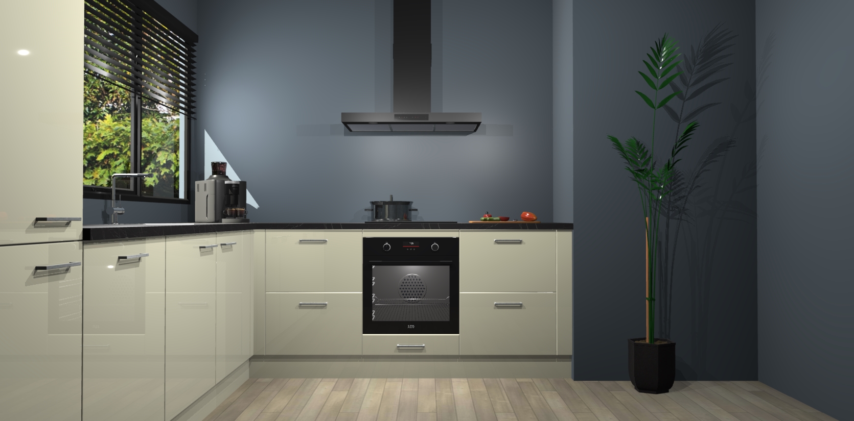 Met een modern, tijdloos design en ruime opslagruimte, zult u zich in no-time thuis voelen in uw nieuwe keuken. Uw leven wordt eenvoudiger met de soft-close deuren die voor het ultieme stille comfort zorgen - geen geluid dat u stoort terwijl u kookt. Ook is de keuken voorzien van 5 ingebouwde apparaten: een oven, inductie kookplaat, afzuigkap, vaatwasser en koelkast. Deze kunnen gemakkelijk na bestelling worden bijgewerkt naar AEG - waardoor uw luxe ervaring compleet is.