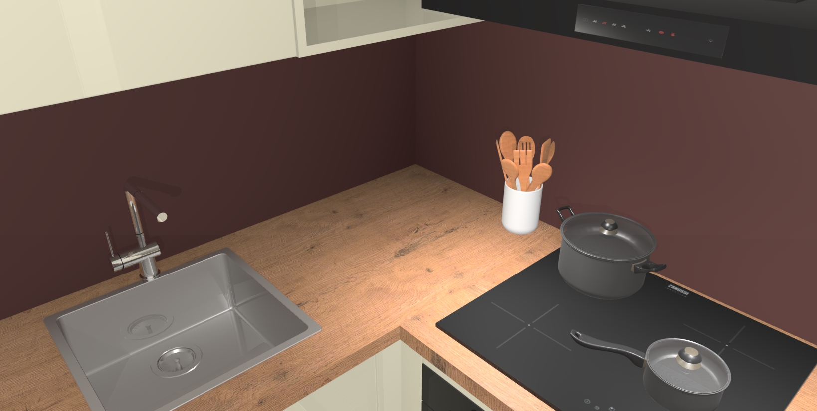 - Uitsparing van kookplaat, spoelbak en kraan dient u zelf te verzorgen.