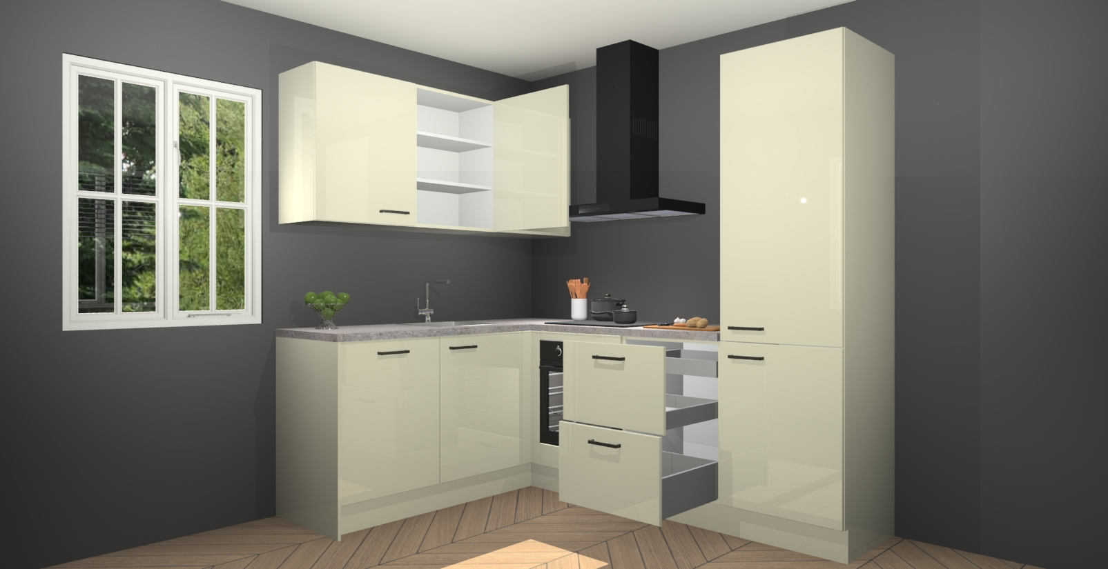 Voor uw keukenrenovatie vindt u geen betere waarde dan de magnolia hoogglans keuken Boekarest! Deze moderne hoekkeuken heeft een tijdloos design, zodat u zich geen zorgen hoeft te maken dat hij over een jaar of twee uit de mode raakt. Hij wordt ook geleverd met vijf inbouwapparaten - een oven, inductiekookplaat, afzuigkap, vaatwasser en koelkast - die u na bestelling allemaal gemakkelijk kunt upgraden naar AEG. Bovendien zorgen de softclose deuren ervoor dat uw keuken lay-out soepel verloopt.