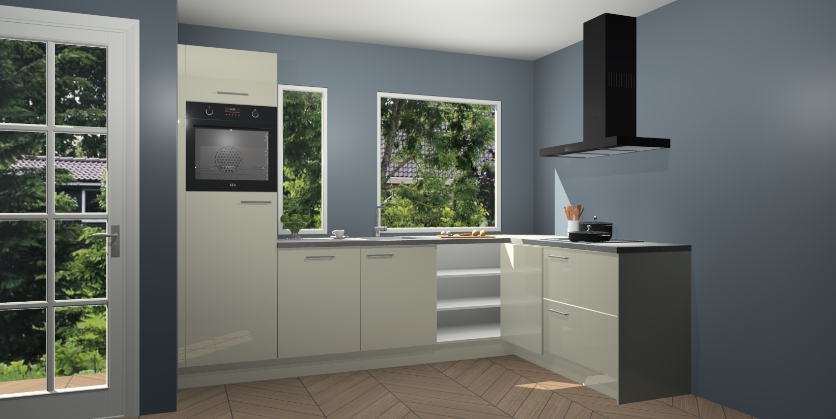Deze complete keuken wordt geleverd met 5 inbouwapparaten: een oven, inductiekookplaat, afzuigkap, vaatwasser en koelkast. De toestellen kunnen na bestelling ook gemakkelijk worden opgewaardeerd naar AEG. Bovendien is elke deur in deze keuken voorzien van handige softclose technologie voor eenvoudig gebruik! Als een leuke toevoeging zit in deze keuken ook een carrousel, zo hoef je niet meer de hoek in duiken om iets te pakken.