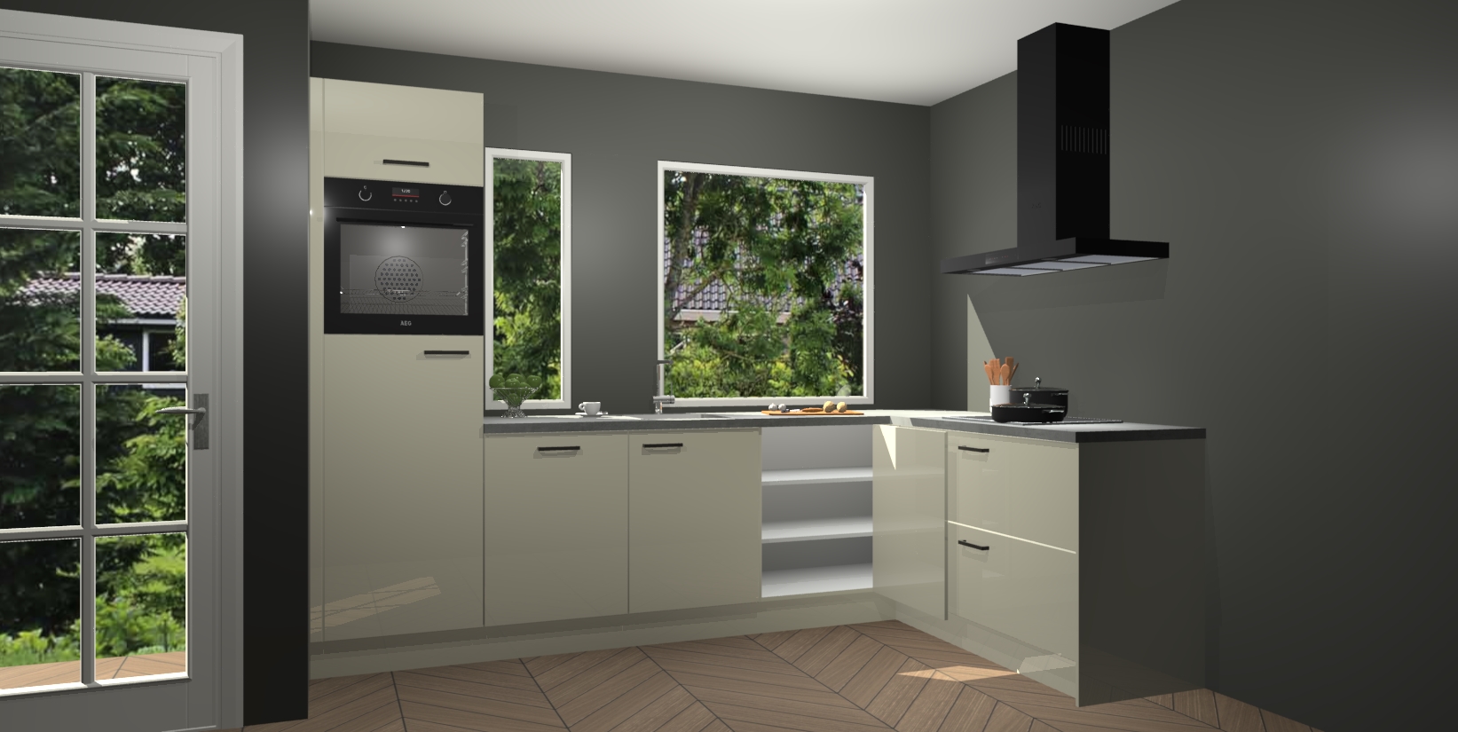 Deze complete keuken wordt geleverd met 5 inbouwapparaten: een oven, inductiekookplaat, afzuigkap, vaatwasser en koelkast. De toestellen kunnen na bestelling ook gemakkelijk worden opgewaardeerd naar AEG. Bovendien is elke deur in deze keuken voorzien van handige softclose technologie voor eenvoudig gebruik! Als een leuke toevoeging zit in deze keuken ook een carrousel, zo hoef je niet meer de hoek in duiken om iets te pakken.